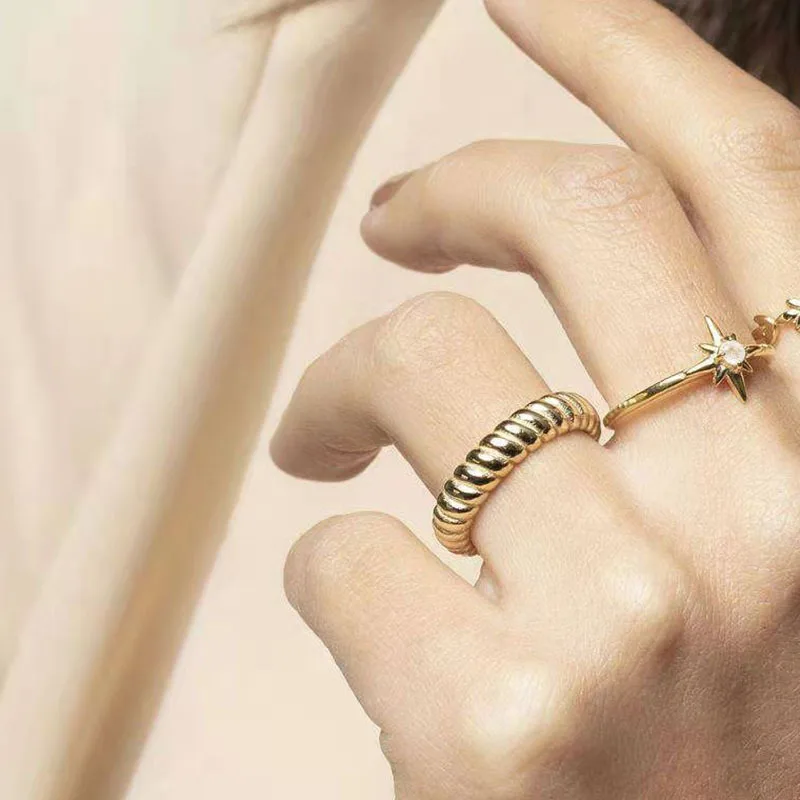 Joolim высокого класса 18K Золото PVD модные ретро простые витые кольца для женщин из нержавеющей стали ювелирные изделия оптом
