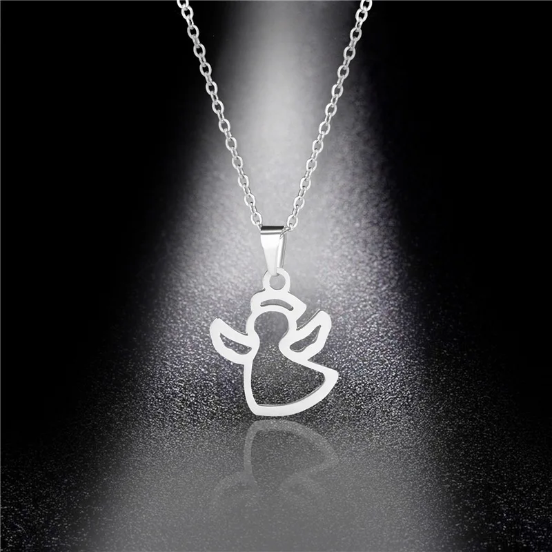 Ангел-хранитель с крыльями, кулон, ожерелье, Женские Ювелирные изделия из нержавеющей стали, платье для первого причастия, с подарком Pendentif Femme подарок