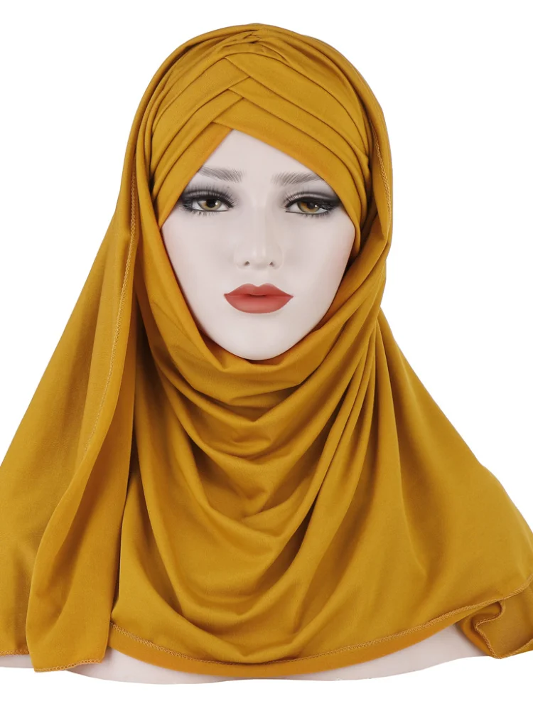 Многоцветный Мягкий Хлопок Мусульманский Платок Мгновенный Джерси Х...
