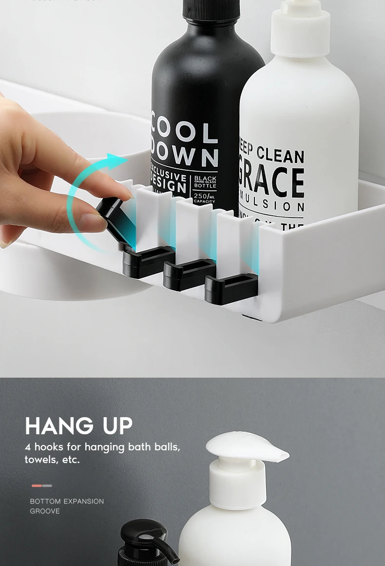 Ванная комната угловая душевая Полка Стеллаж для выставки товаров с 4 Крюк настенный держатель для душа шампунь организовать вращающийся самоклеющиеся Кухня для хранения