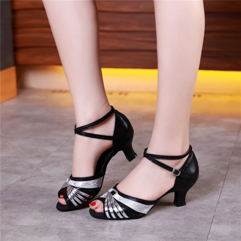 Блестящие туфли для латиноамериканских танцев, женские туфли с закр...