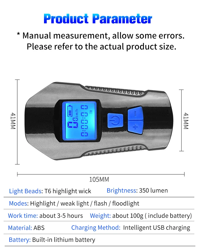 Велосипедсветильник светильник LISM IPX7, 6 режимов, USB, со спидом...