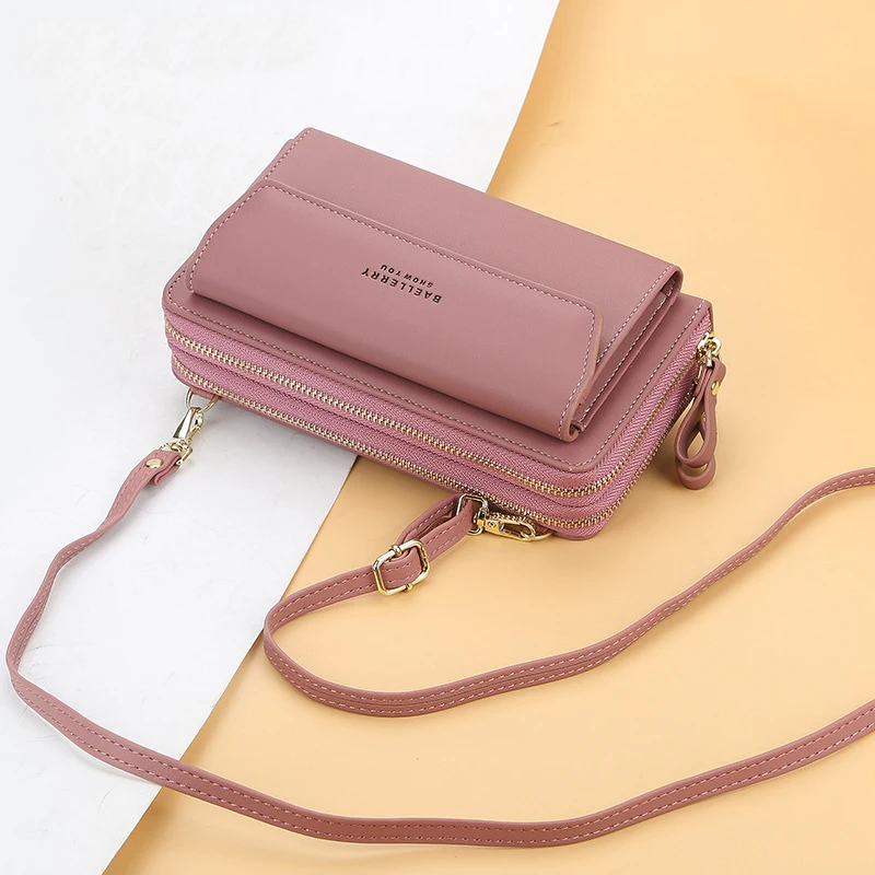 Клатч женский из искусственной кожи, с двумя карманами на молнии, мобильный телефон