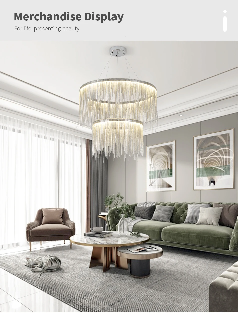 Потолочная люстра в стиле постмодерн, алюминиевая цепь с кисточками...