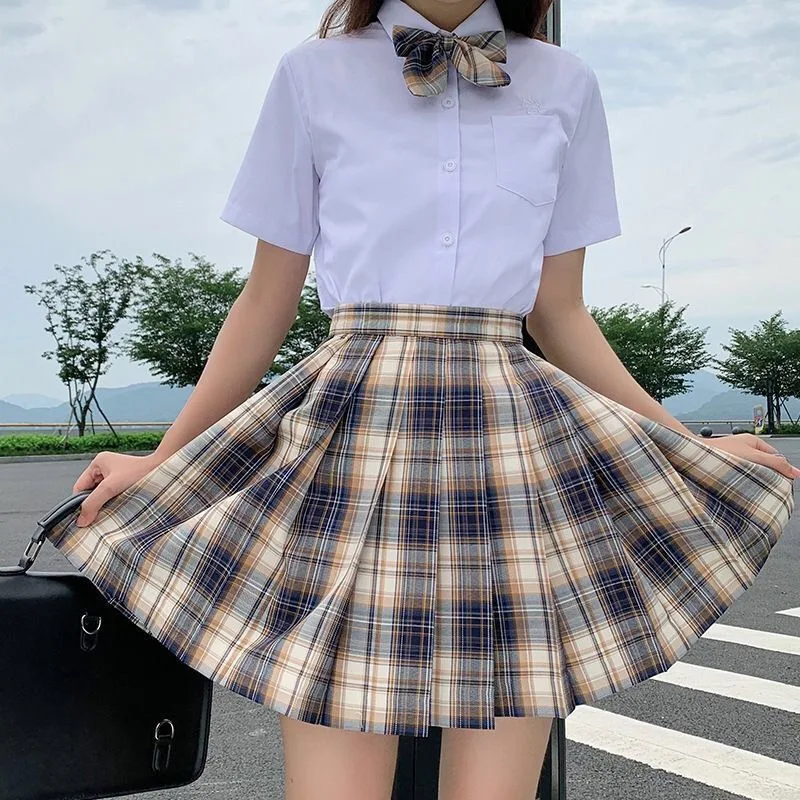 Клетчатая японская юбка JK, плиссированная юбка с высокой талией в ...