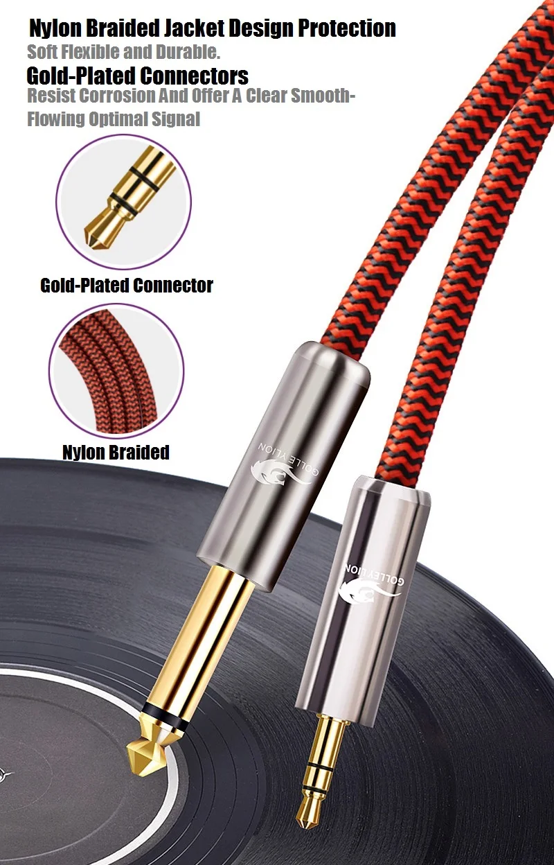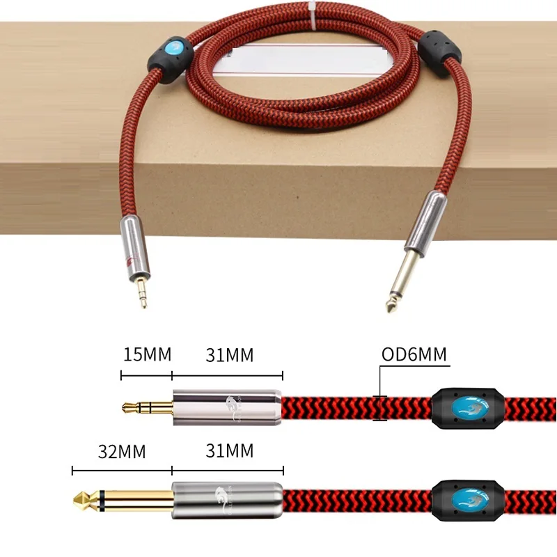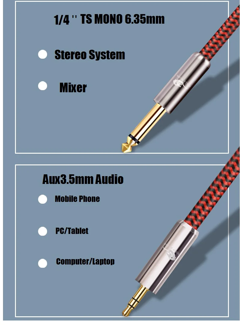 Аудиокабель TS, 14 дюйма, моно-штекер 6,35 мм-3,5 мм, штекер Aux для микшерной консоли, усилителя, гитарного усилителя, басового инструмента, экранированные шнуры
