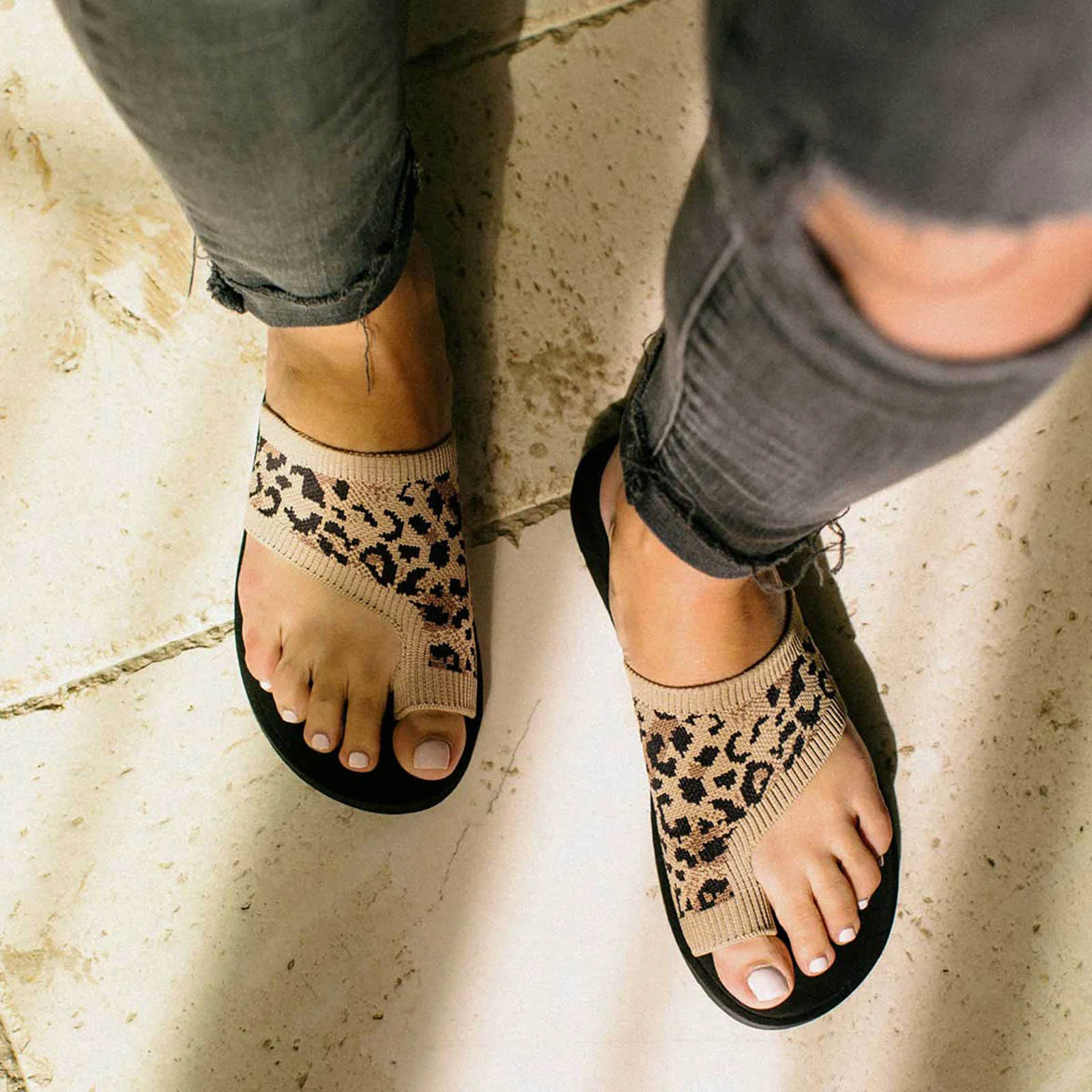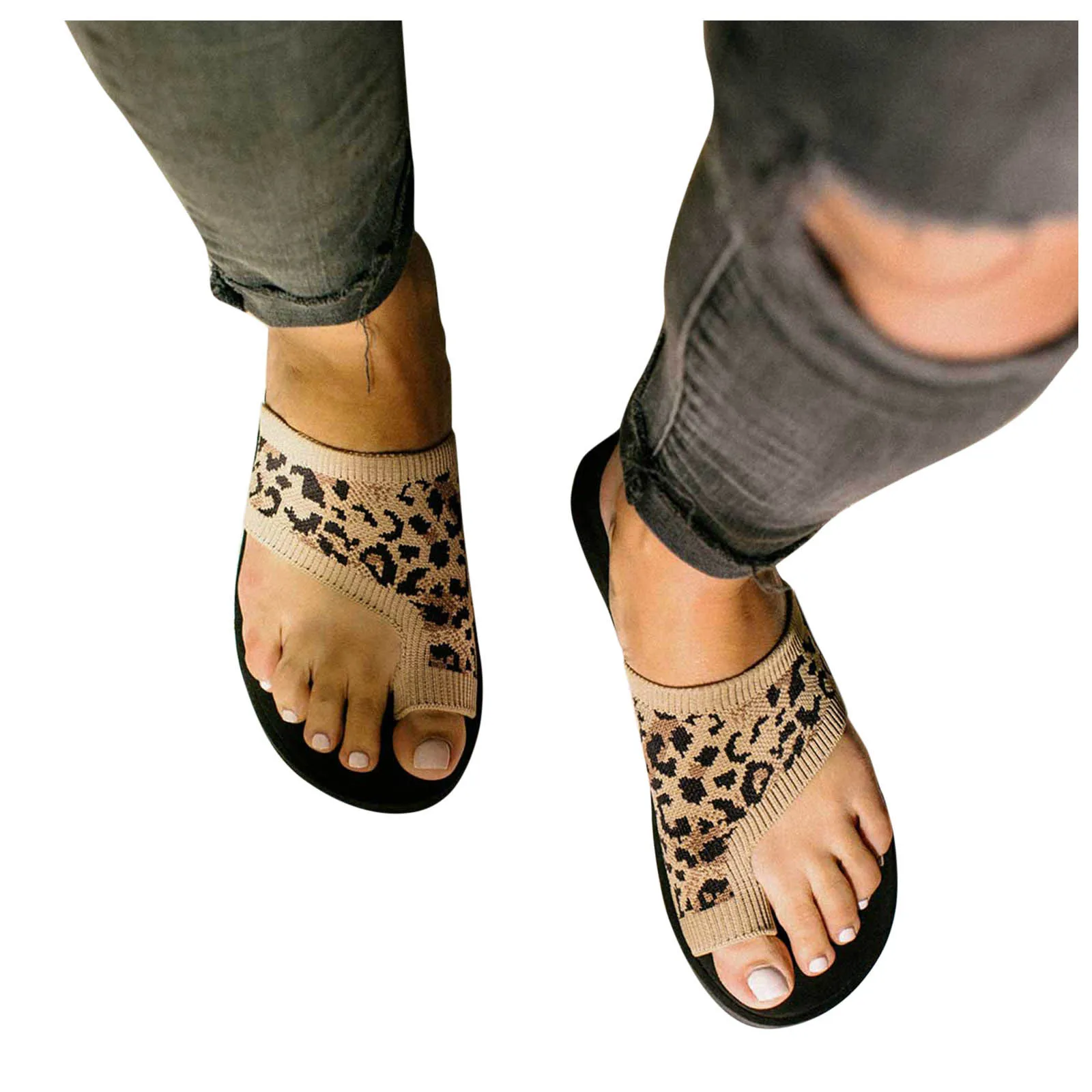 Сандалии женские с леопардовым принтом, плоская подошва, сетчатые дышащие, Нескользящие, с круглым носком, без застежки, летние Тапочки