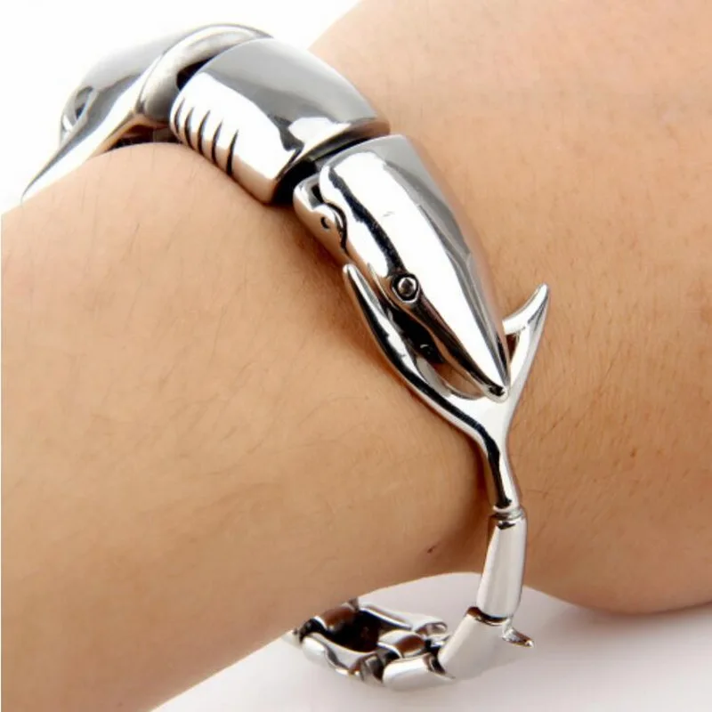 Новый стиль, браслеты из нержавеющей стали в виде акулы, полированн...