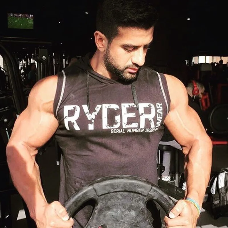 Мужские майки для бодибилдинга с капюшоном для спортзала фитнеса тр...