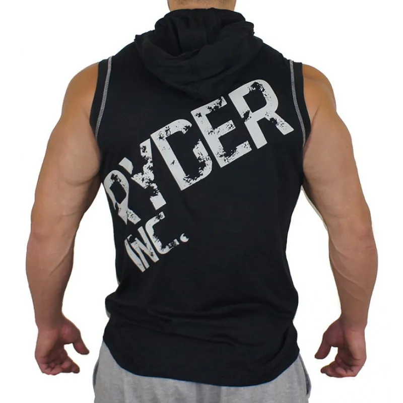 Мужская майка с капюшоном для бодибилдинга, хлопковый жилет без рук...