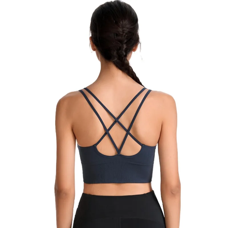 Спортивный бюстгальтер для йоги с лентами и перекрестной спиной, Бы...