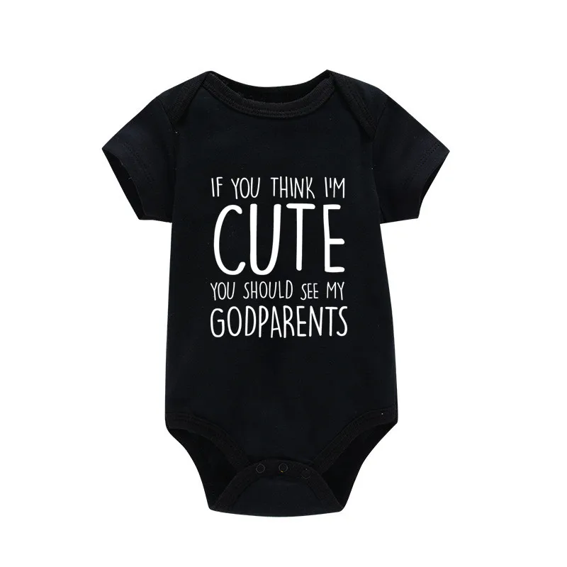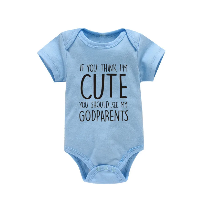 Летний детский комбинезон, если вы считаете меня милой, вы должны увидеть моих крестных родителей, хлопковые детские комбинезоны с коротким рукавом, Одежда для новорожденных