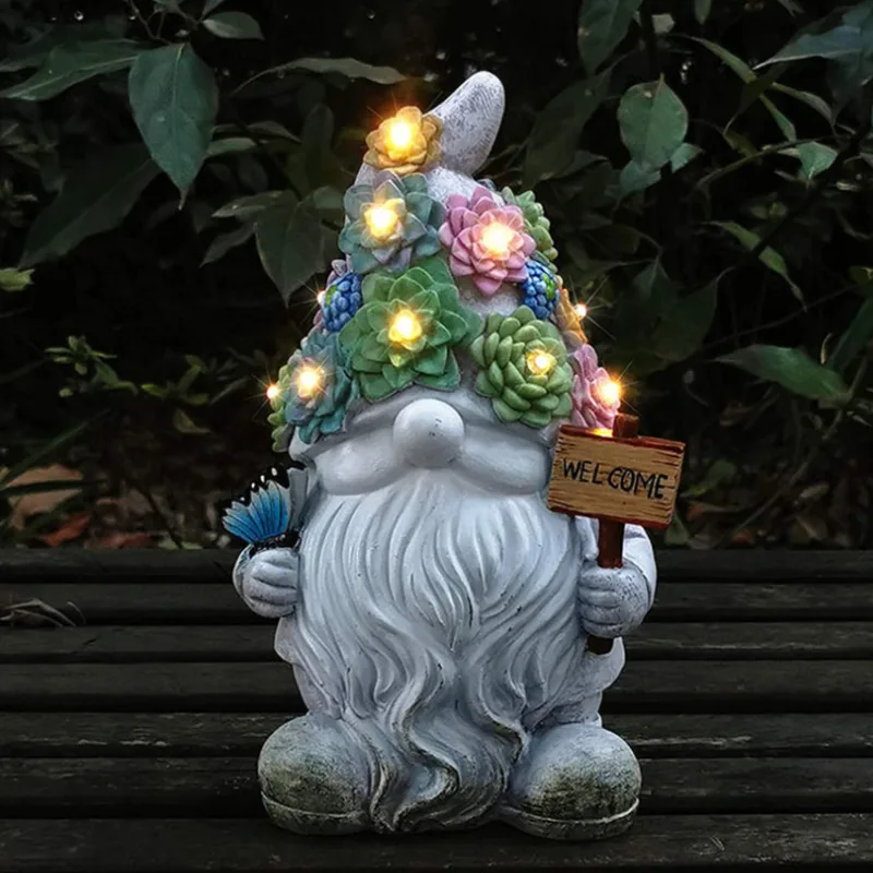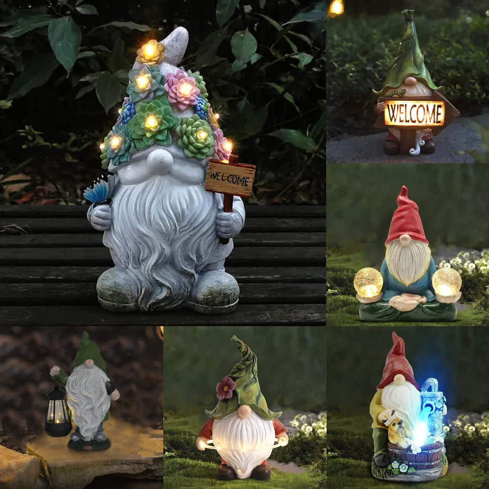 Уличная садовая карликовая статуя, статуя карликовая из смолы, переносной Волшебный шар, светодиодный светильник, знак приветствия, гном, двор, газон, Большая фигурка