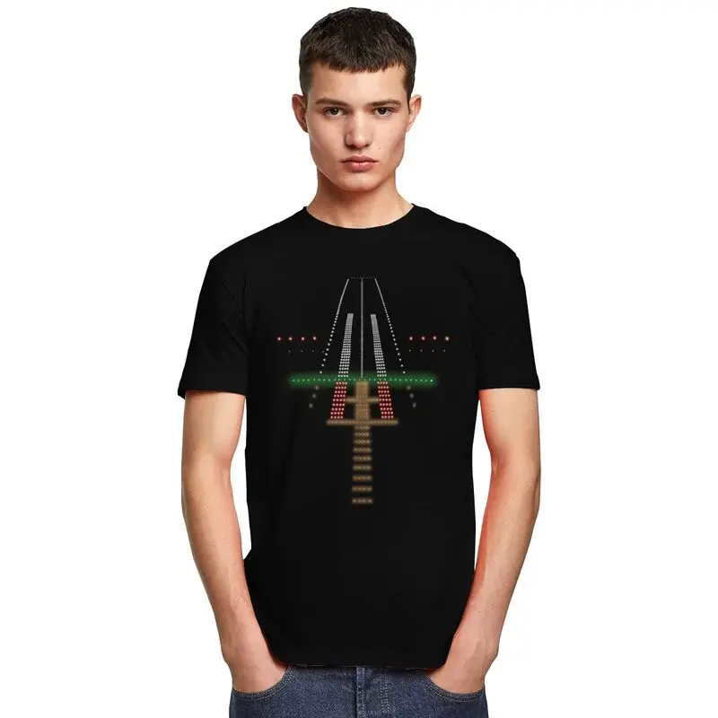 Мужская хлопковая футболка с рисунком, подиумная рубашка с рисунком аэропорта, огней ночью, коротким рукавом, контроллер воздушного движения, одежда в подарок