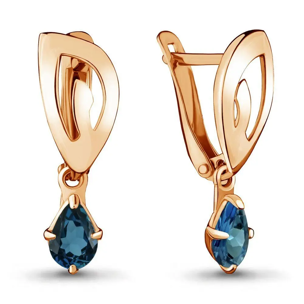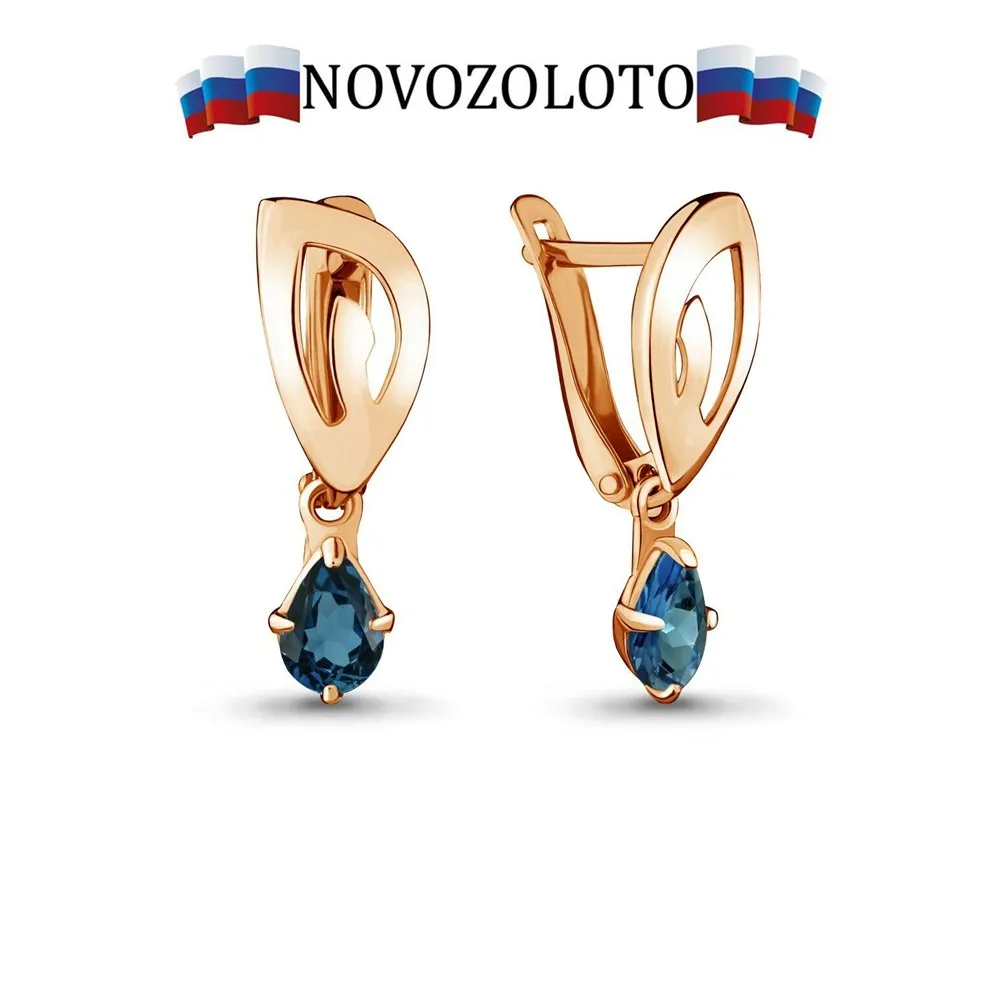 Серьги тренд 2022 NOVOZOLOTO подлинное серебро 925 пробы Россия, топаз лондон блю, покрытие золото, бирка, пломба, клеймо