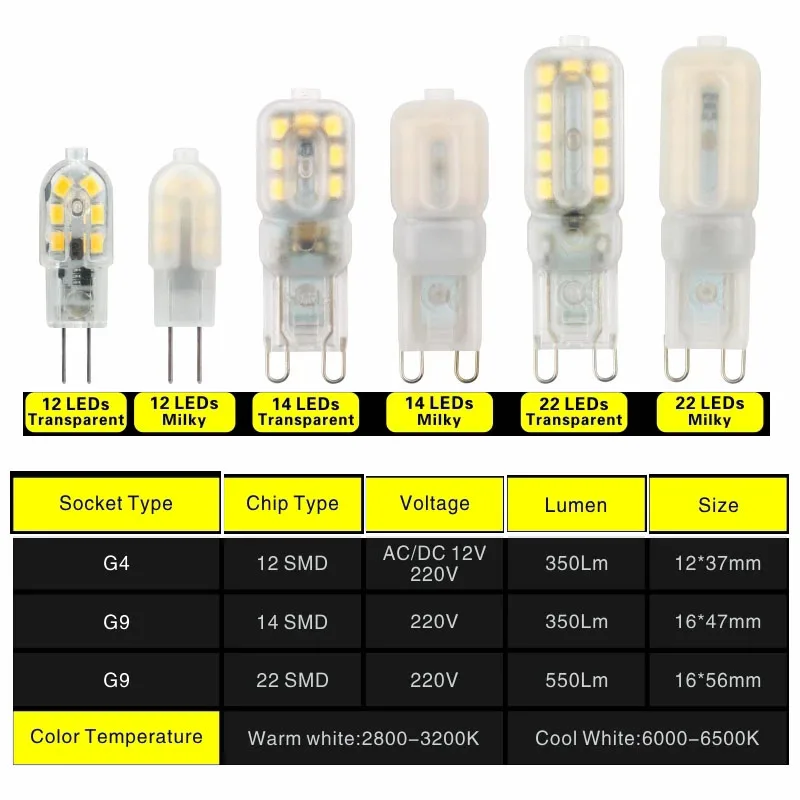 Простая установка: Стандартная база G4 / G9, может быть легко установлена вместо обычных галогенных ламп.
