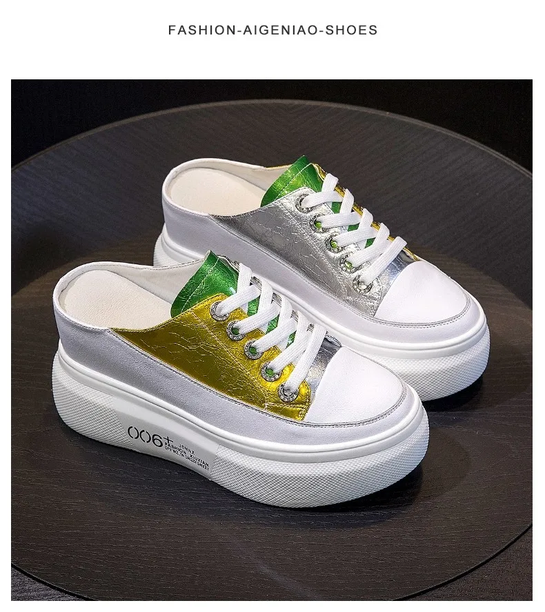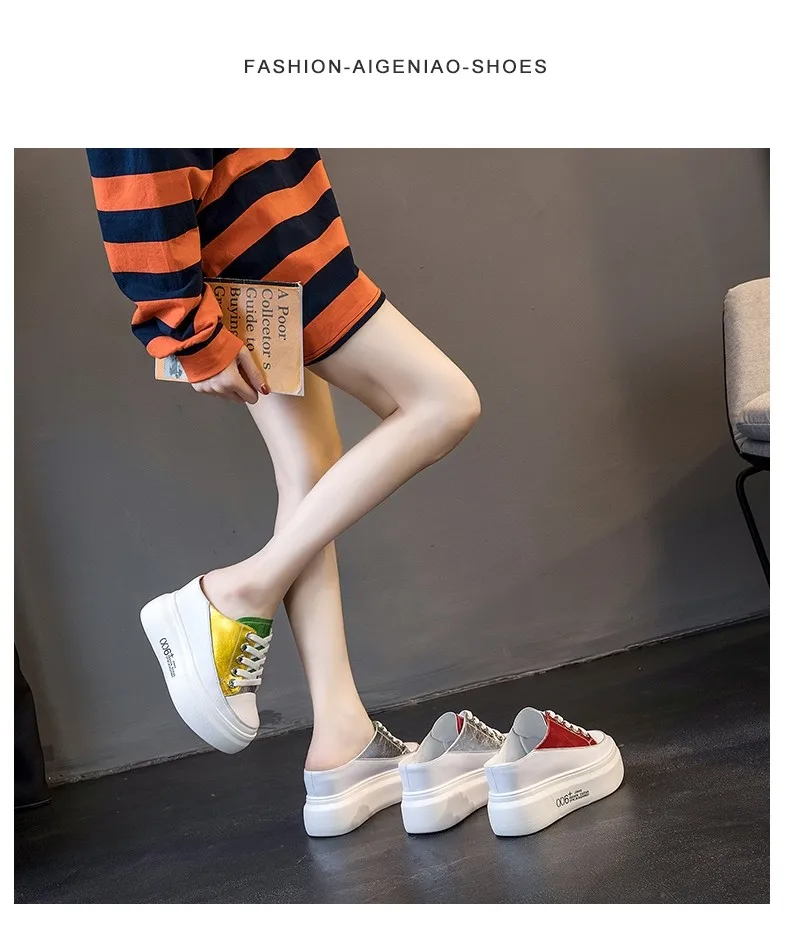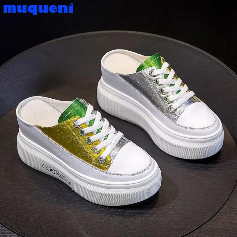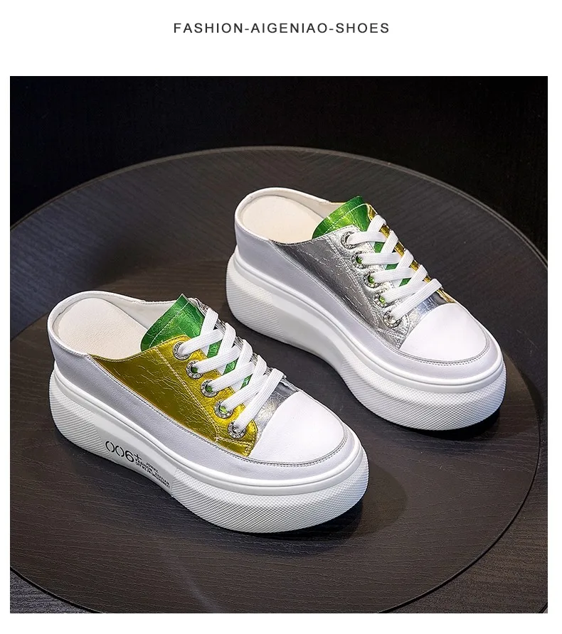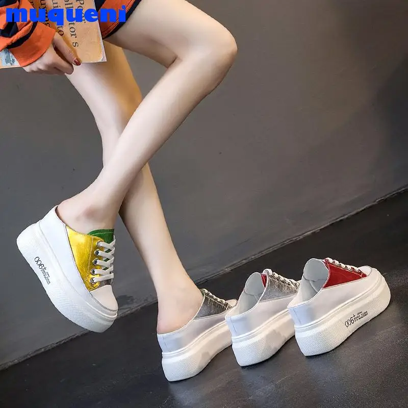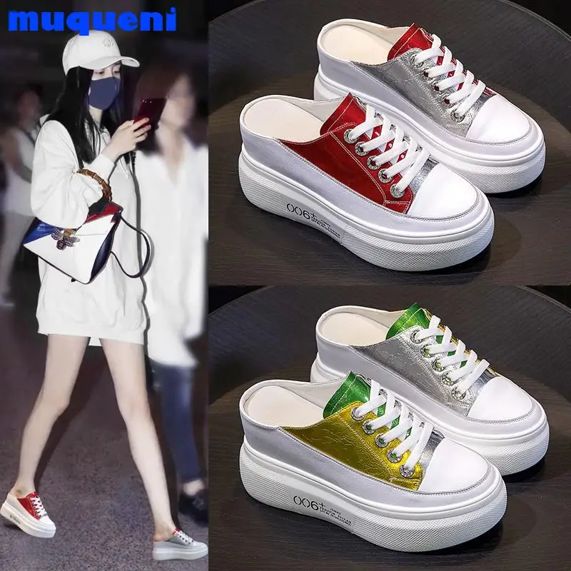 Новинка лета 2021, полутапочки Baotou без каблука, женские кроссовки, уличная кожаная обувь для прогулок, женские сандалии