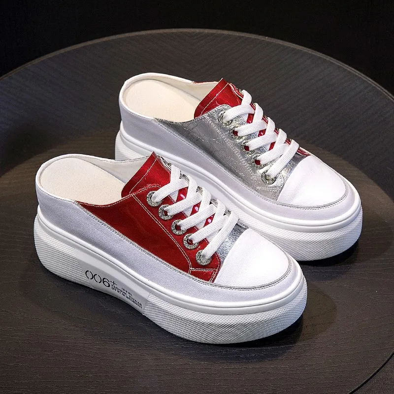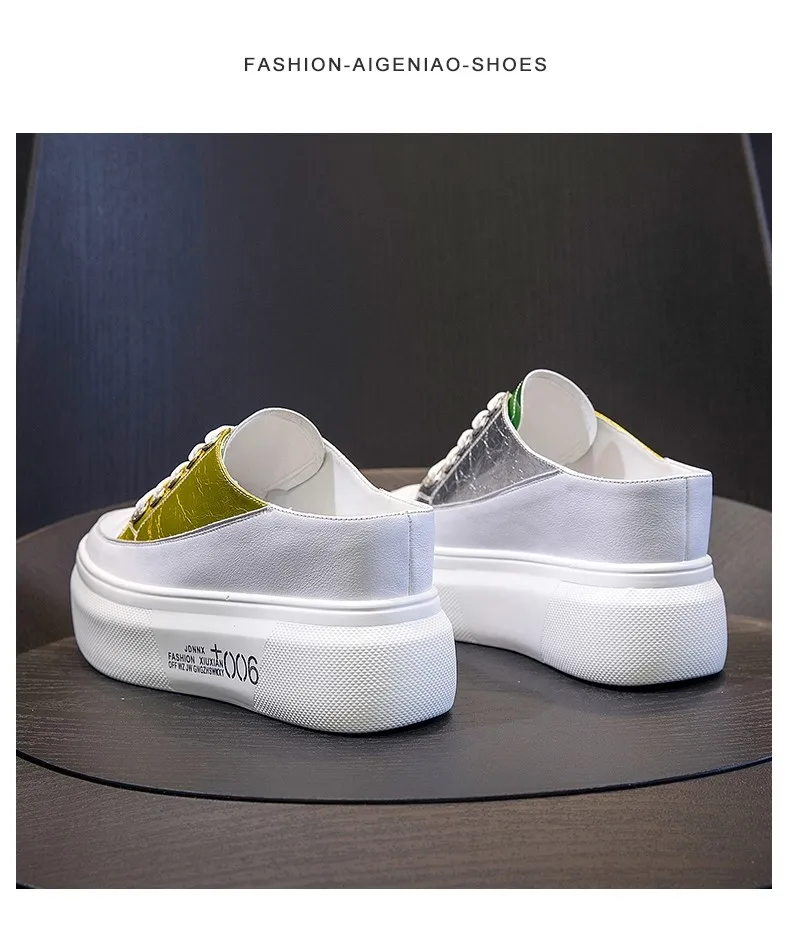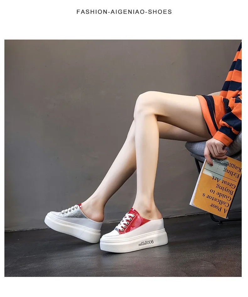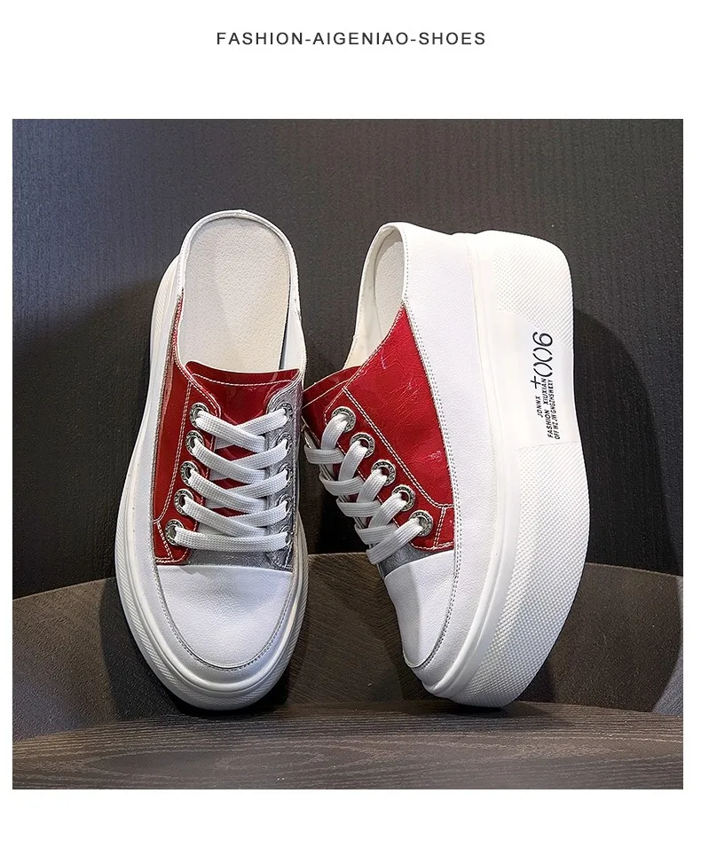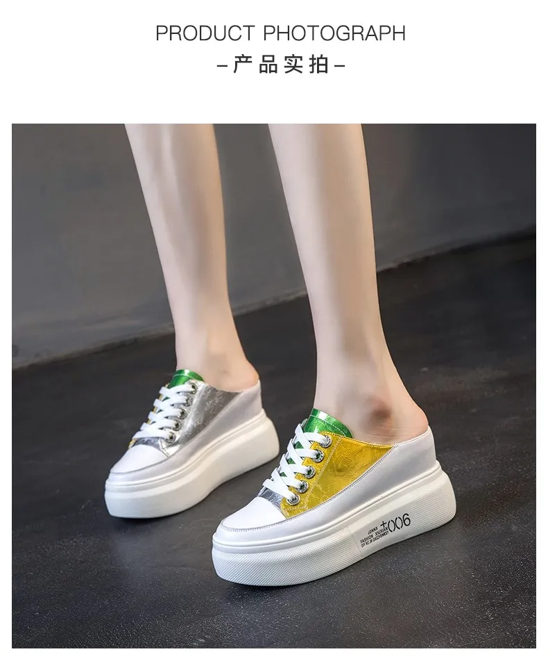 Новинка лета 2021, полутапочки Baotou без каблука, женские кроссовки, уличная кожаная обувь для прогулок, женские сандалии