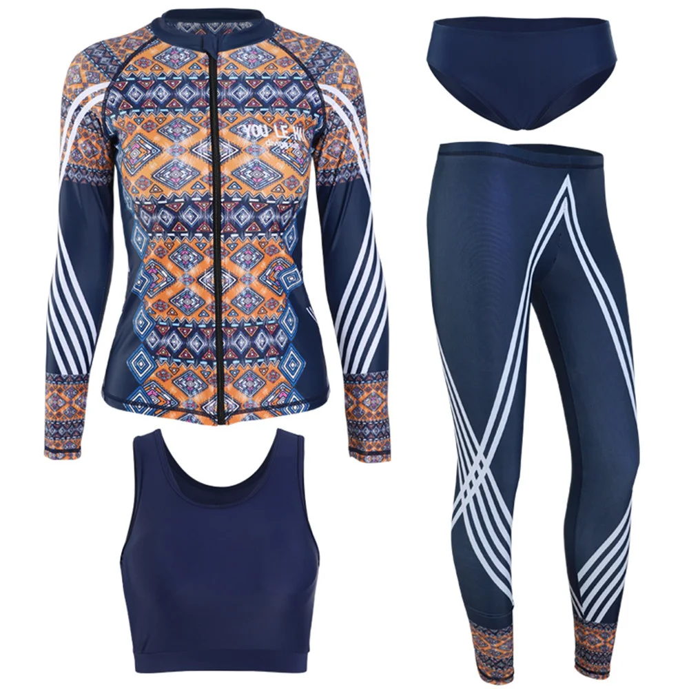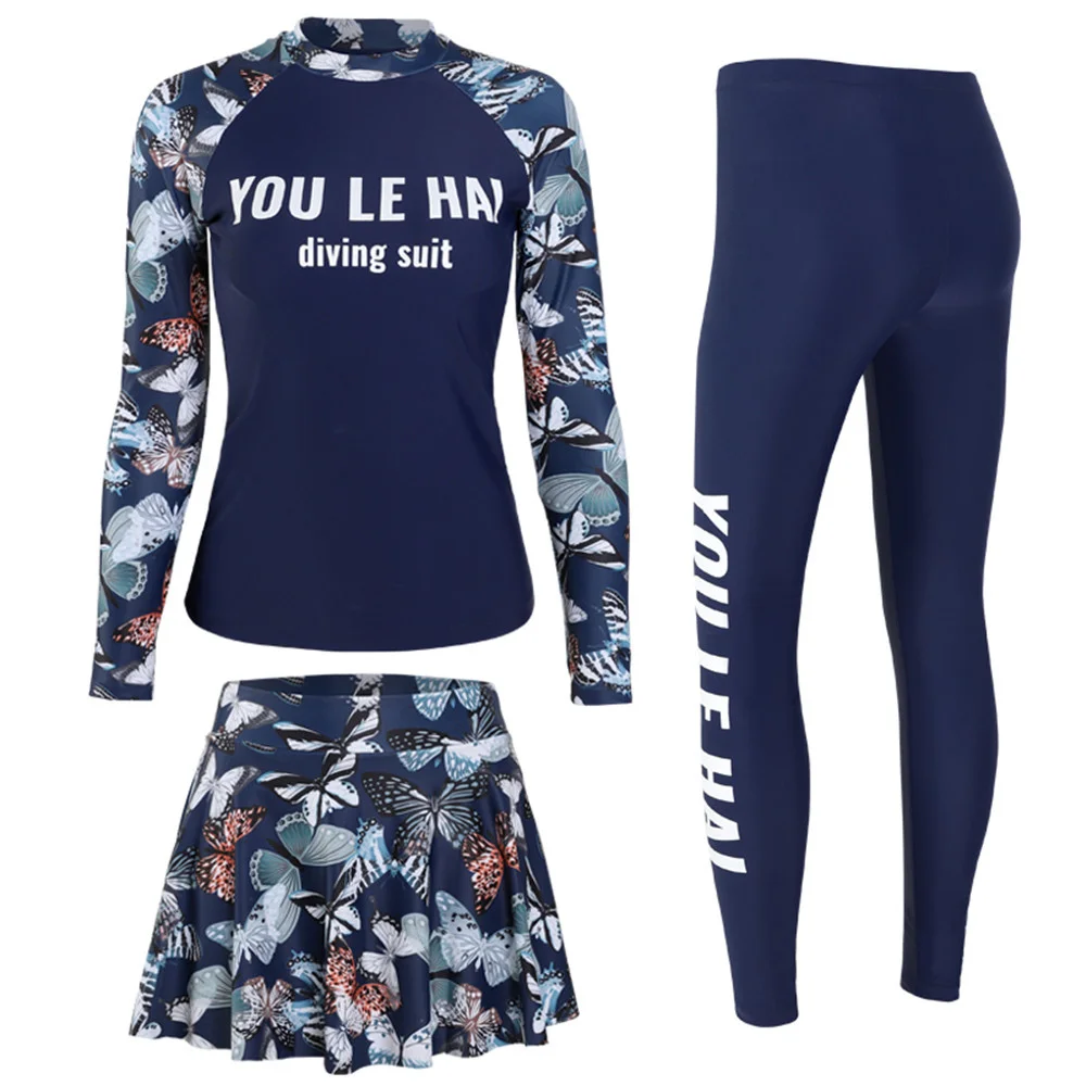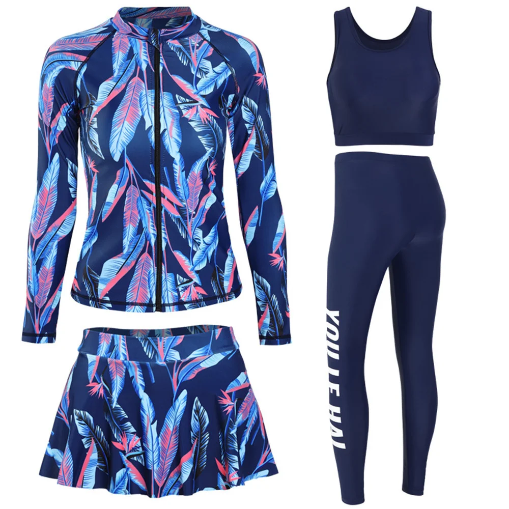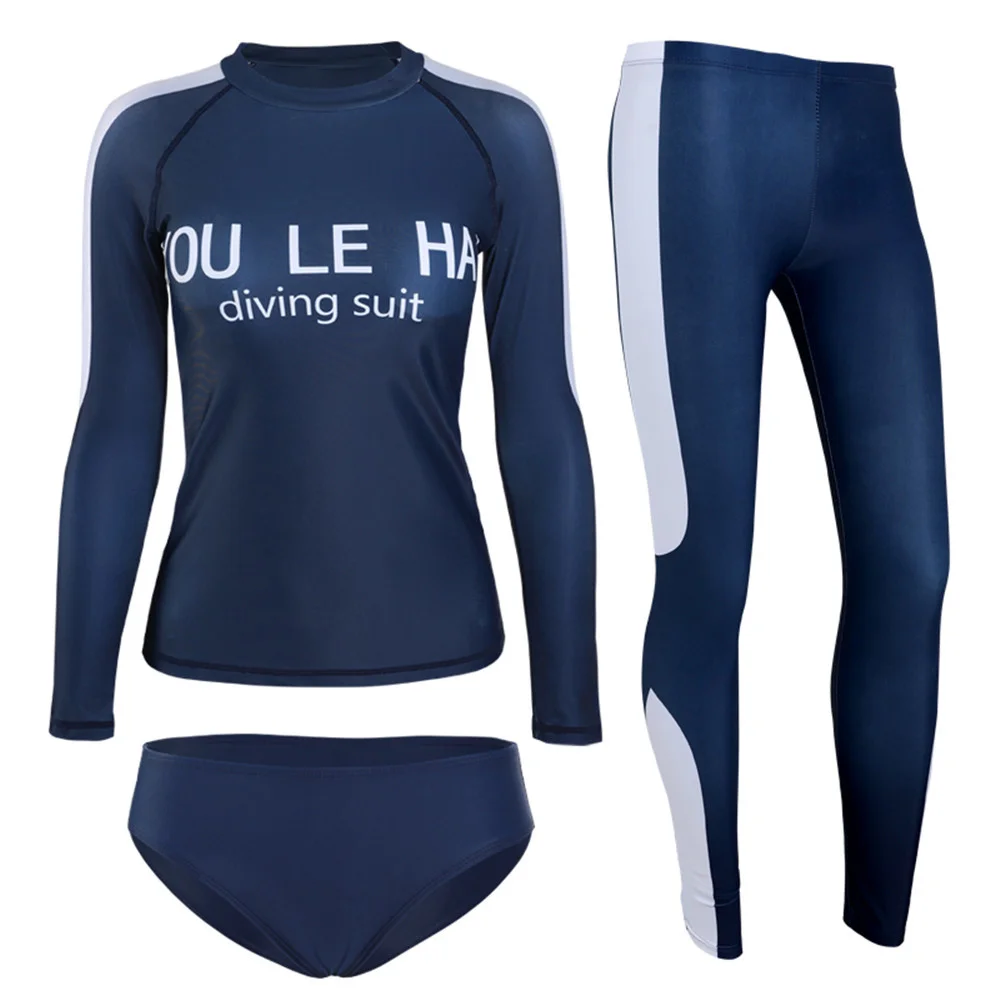 Traje de baño de dos piezas de manga larga para mujer, bragas largas, traje de surf, traje de baño de cuello alto, camisa de buceo, trajes de baño con aumento