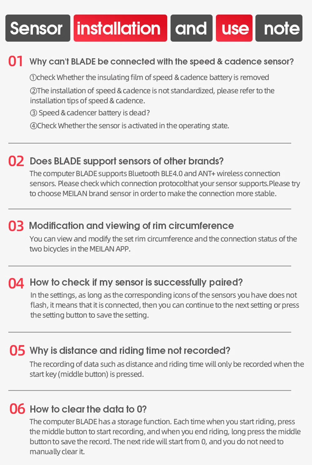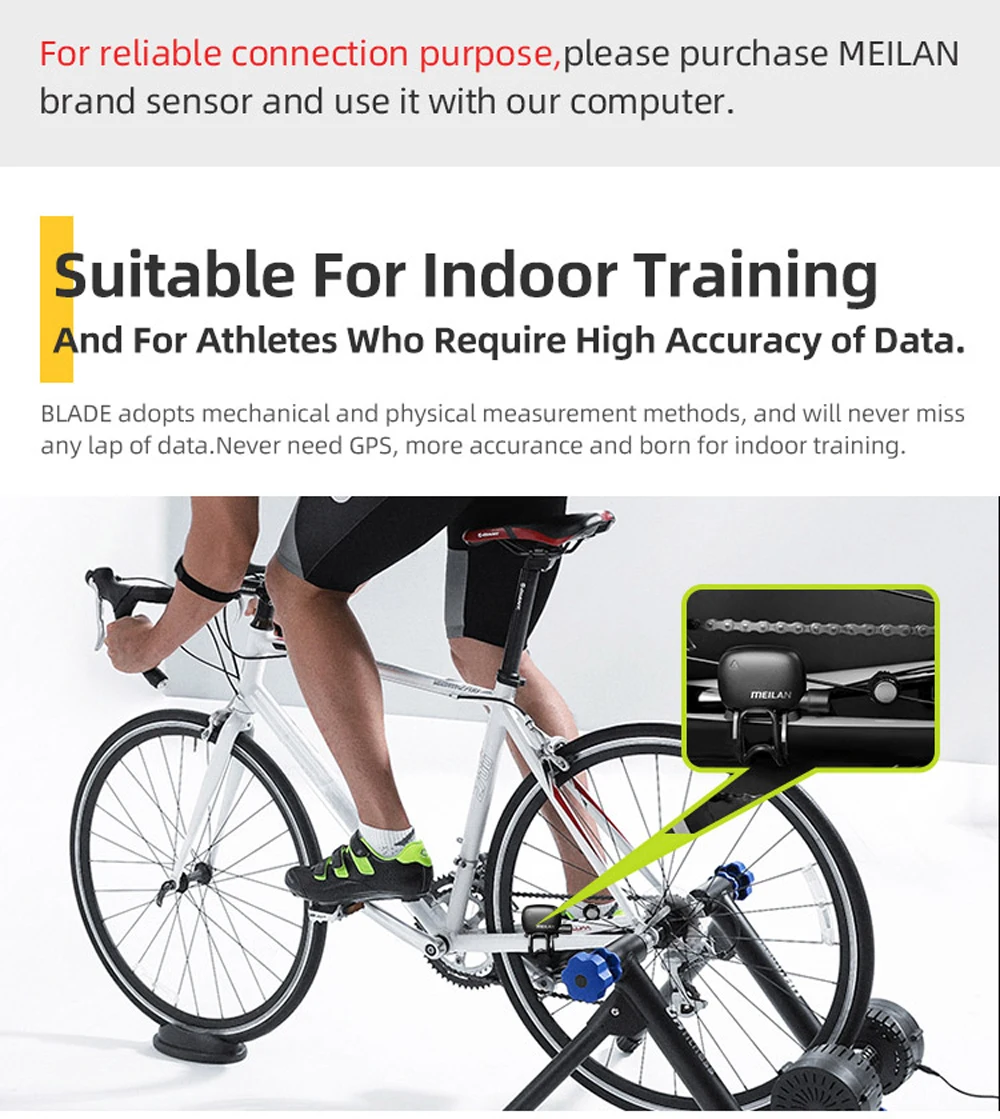 Meilan M4 использует Bluetooth 4,0/ANT + двойную технологию беспроводной передачи, подключается к беспроводному датчику скорости/Каденции, велосипедный компьютер может записывать RMP велосипедистов, велосипедное расстояние в реальном времени, скорость, время вождения, потребление калорий, температура и т. Д. Это удобно для гонщиков, чтобы лучше управлять их тренировочными процессами.