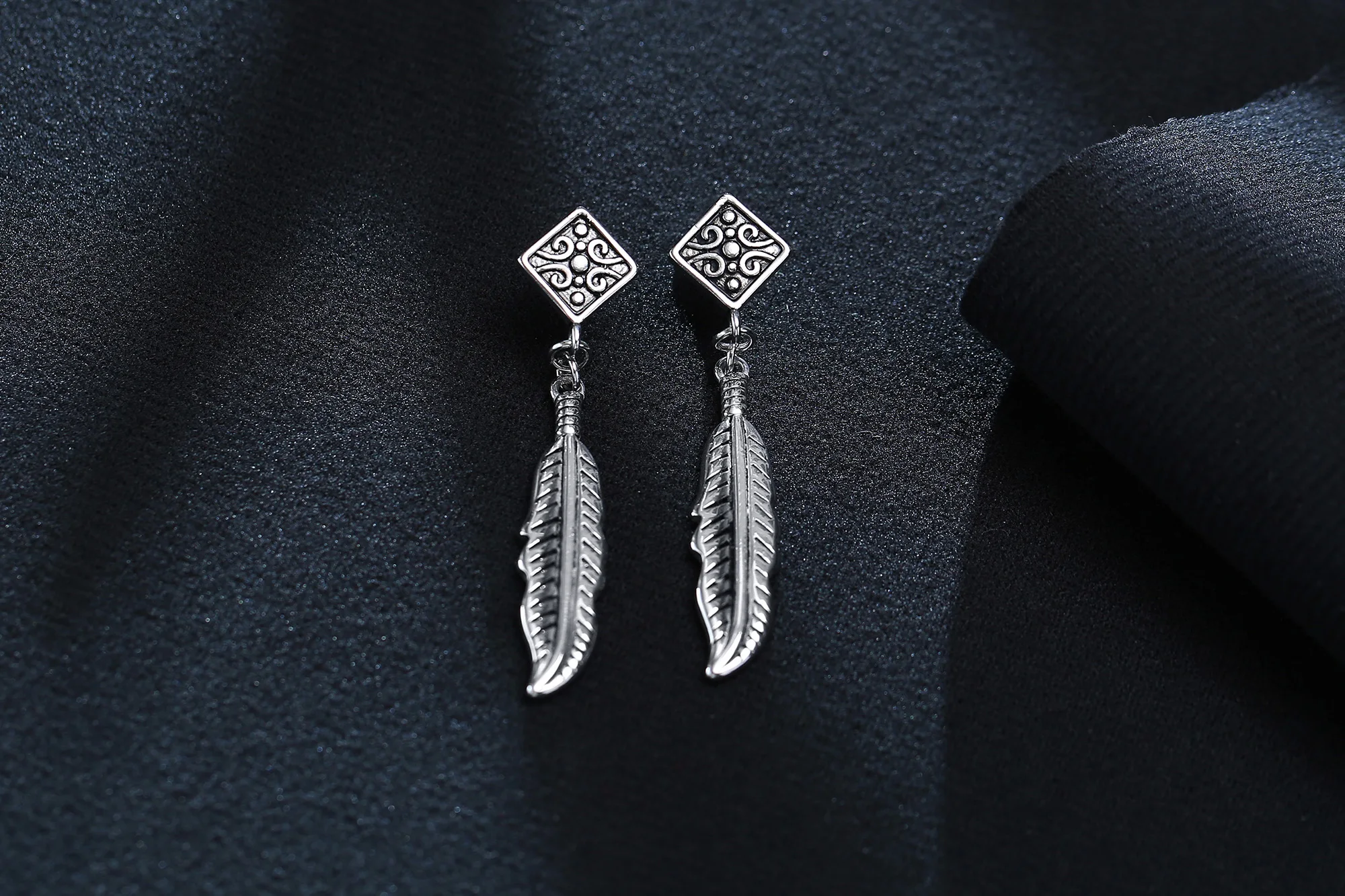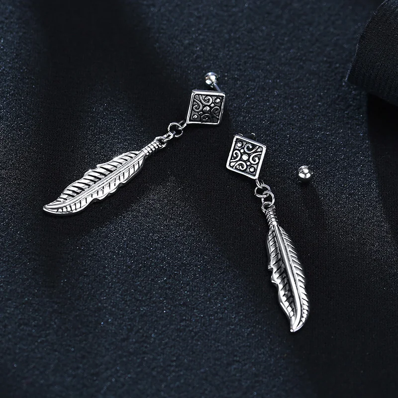 Серьги с перьями серебристого цвета, индийские серьги-подвески для индейцев, гипоаллергенные сережки из нержавеющей стали