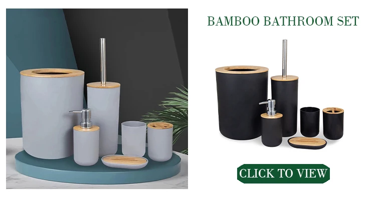 Изготовлен из полипропиленового материала, экологически чистый и здоровый. Украшенный бамбуком и деревом, натуральный, элегантный и со вкусом. Держатель туалетной щетки: щетка с бамбуковой ручкой и ПП держатель основания. Герметичный дизайн, запах не подвержен воздействию. Мыльница: бамбуковые деревянные поддоны могут быть вывезены. Полый дизайн с функцией слива. Дозатор мыла: гладкие и гладкие насадки подходят для вашей ладони. Держатель зубной пасты: встроенная бамбуковая перегородка для разделения зубной пасты и зубной щетки. Бамбуковая перегородка может быть вывезена. Держатель зубной щетки: четыре части дизайна для зубной щетки до 4. Бамбуковая перегородка может быть вынута, затем держатель зубной щетки может использоваться в качестве чашки.