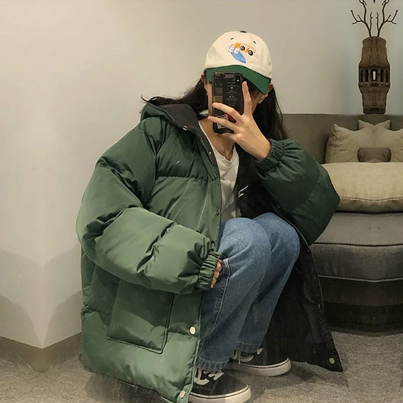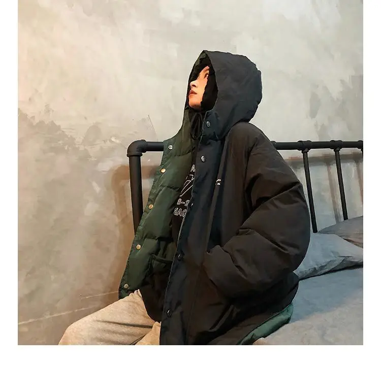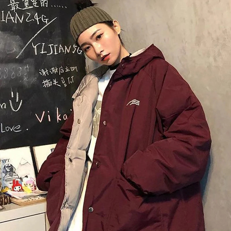 Парка женская двухсторонняя модная дизайнерская зимняя шикарная свободная утолщенная Женская однобортная уличная одежда Ulzzang с капюшоном
