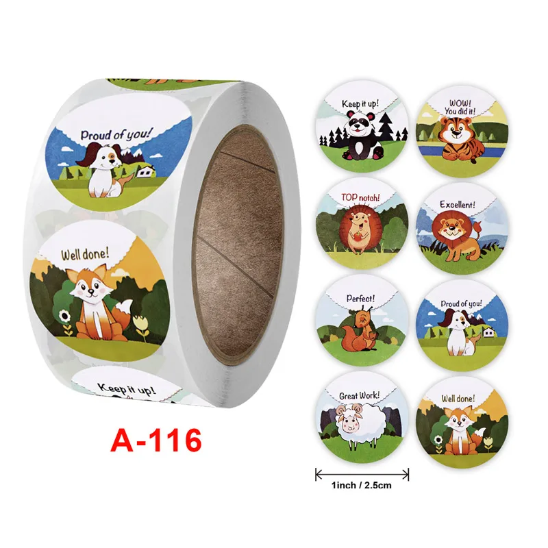 Милые наклейки, круглые Мультяшные животные, 100-300 шт., клейкие, этикетки для печати для поздравительных открыток, подарочные украшения, Канцтовары