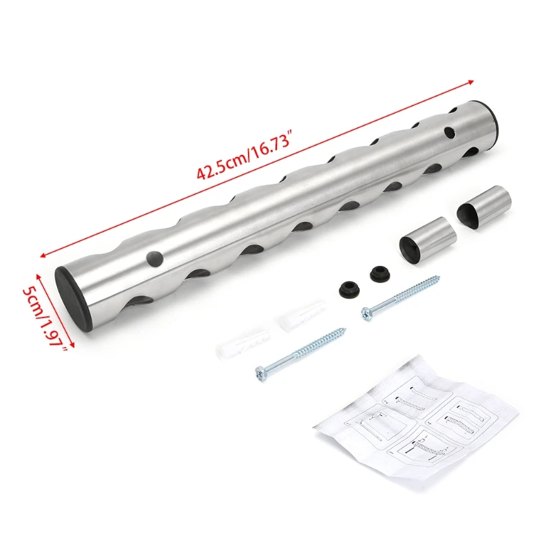 Креативный дизайн Винные держатели из нержавеющей стали винный шкаф бар настенный держательОсобенности100% новый и высокое качествоЭтот сказочный винный шкаф из нержавеющей стали крепится к стене и позволяет хранить до 8 бутылок любимого вина удобно, не занимая ни одного ценного рабочего места в вашей кухне или столовой.Просто поместите на стену и загрузите винные бутылки Горизонтально в просверленные отверстия и дисплейКомпактный, современный дизайн, матовая поверхностьИспользование:Крепление к стенам с помощью винтов и septas (установка аксессуаров включает в себя)В комплект входят 3 прокладки, между стеной и винной стойкойЧерный пластиковый фитинг внутри для каждого отверстия для защиты и фиксации бутылкиБутылки чередуются с каждой стороны, их нельзя надевать только на одну сторонуСпецификация:Материал: передовая нержавеющая стальЦвет: серебристыйРазмеры: 42.5x 5 см/16,73x1,97"Количество: 1 шт.Примечание:1. Перевод ед. измерения: 1 см = 10 мм = 0,39 дюймов2. Допускается погрешность в 0-3 см из-за ручного измерения. Пожалуйста, убедитесь, что вы не возражаете, прежде чем сделать ставку.3. Из-за разницы между различными мониторами изображение может не отражать фактический цвет изделия. Спасибо!Посылка включает в себя:1 держатель для вина3 x прокладки