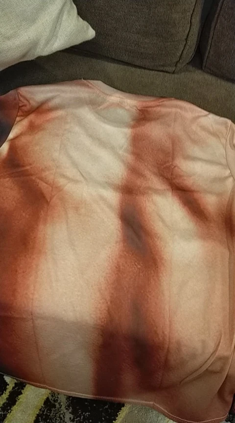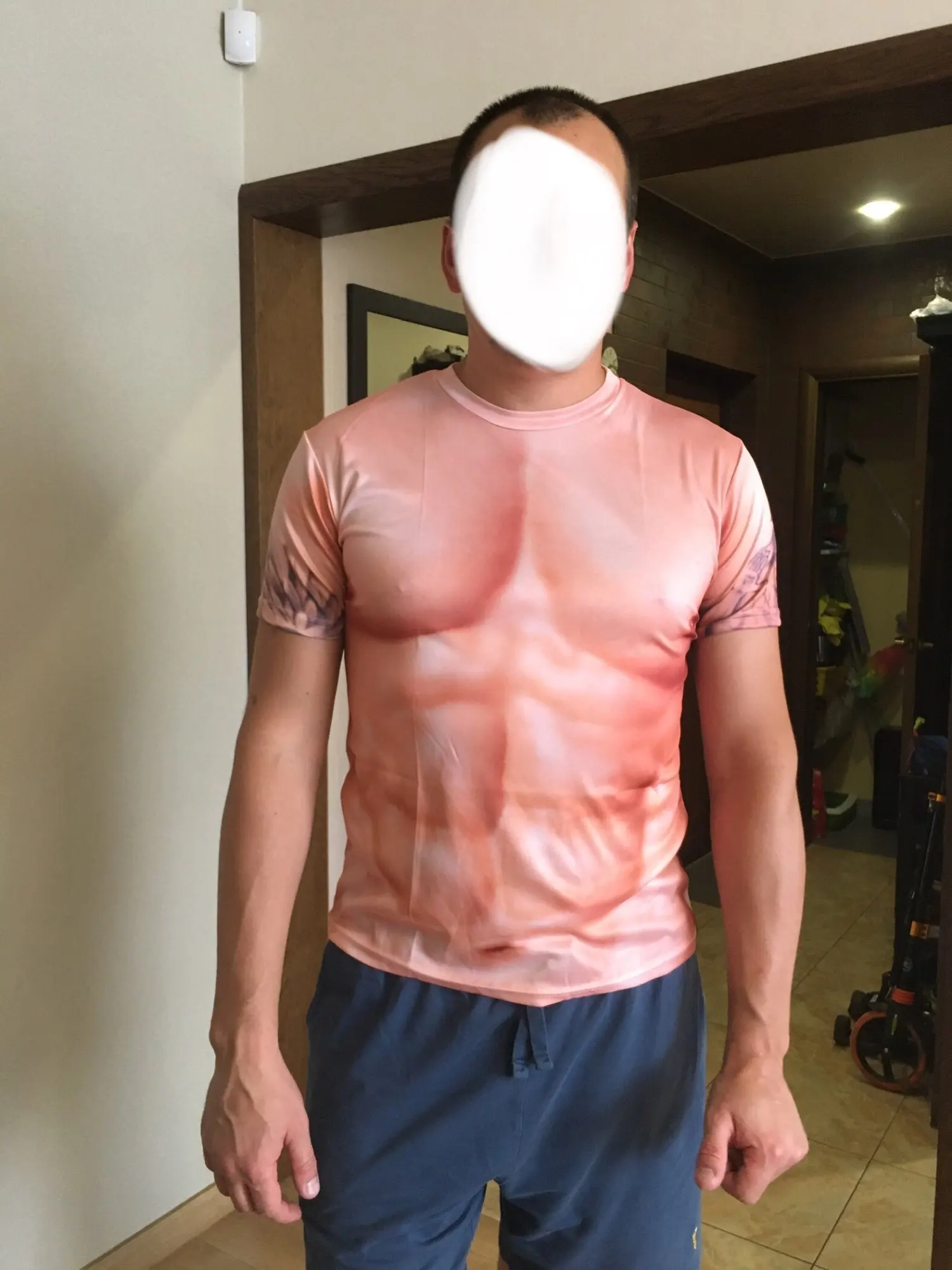Я не ожидала, что футболка будет розовой. У него также есть соски, мышцы и кнопка для живота на задней части, которых у людей нет!