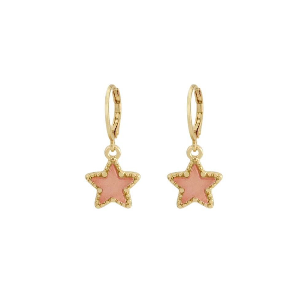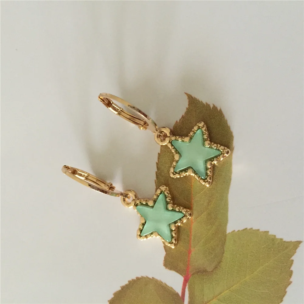 Серьги-кольца женские золотистые, со звездами, зелеными, слоновой кости, персиковыми и фиолетовыми подвесками