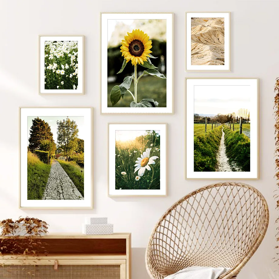 Плакаты и принты на холсте с изображением подсолнечника, Листьев, п...
