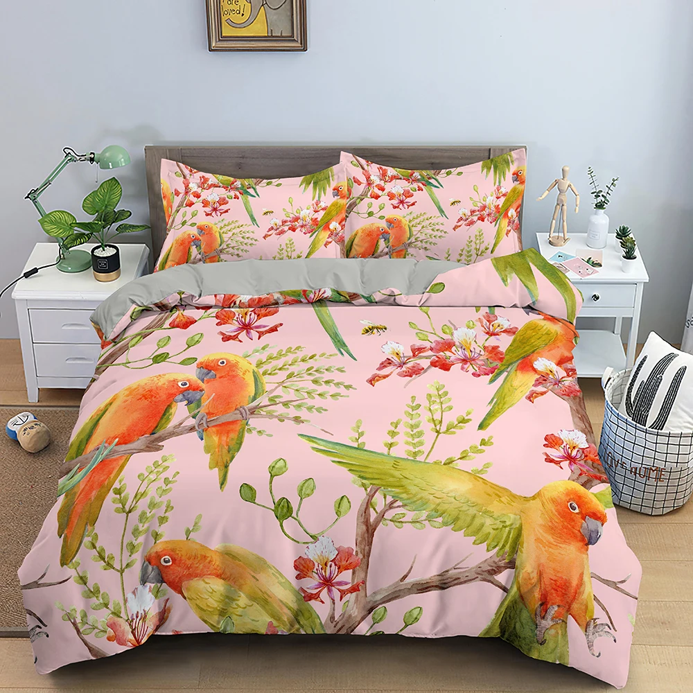 Комплект постельного белья с тропическими растениями, пододеяльник ...