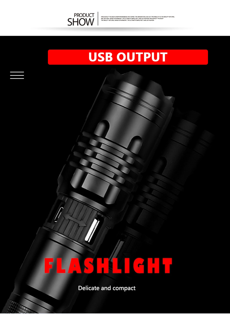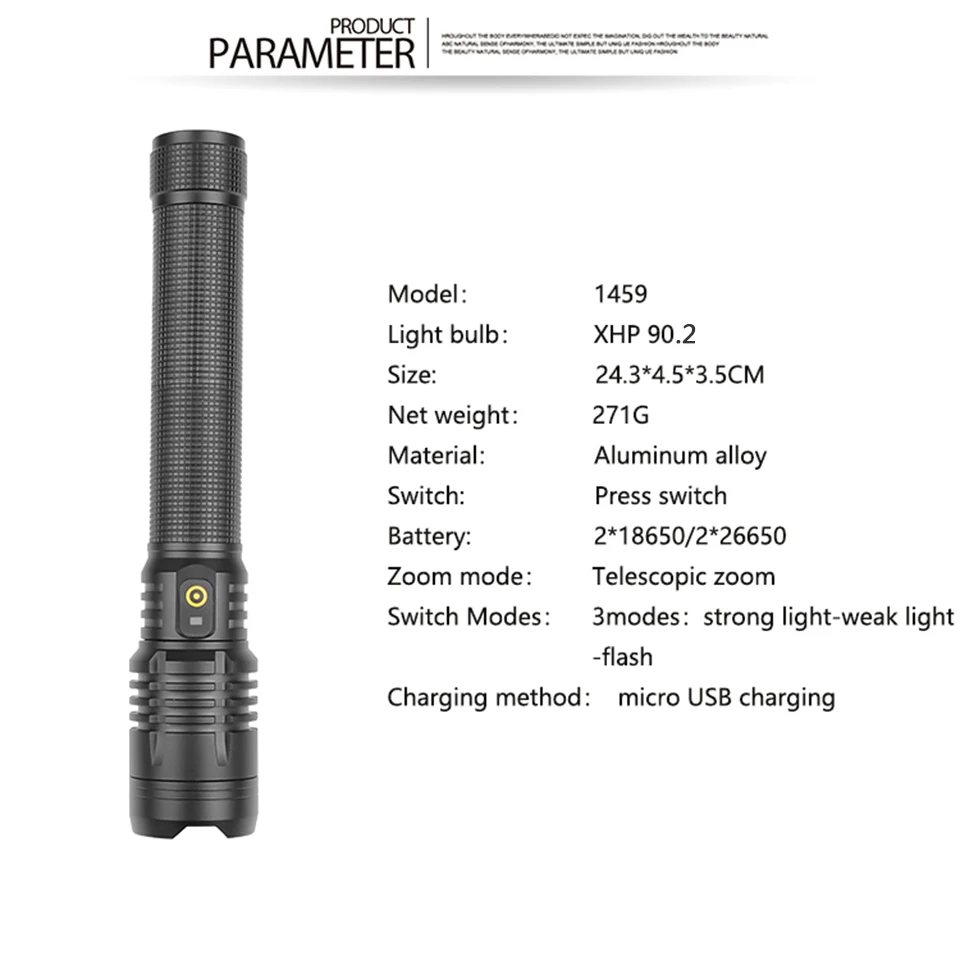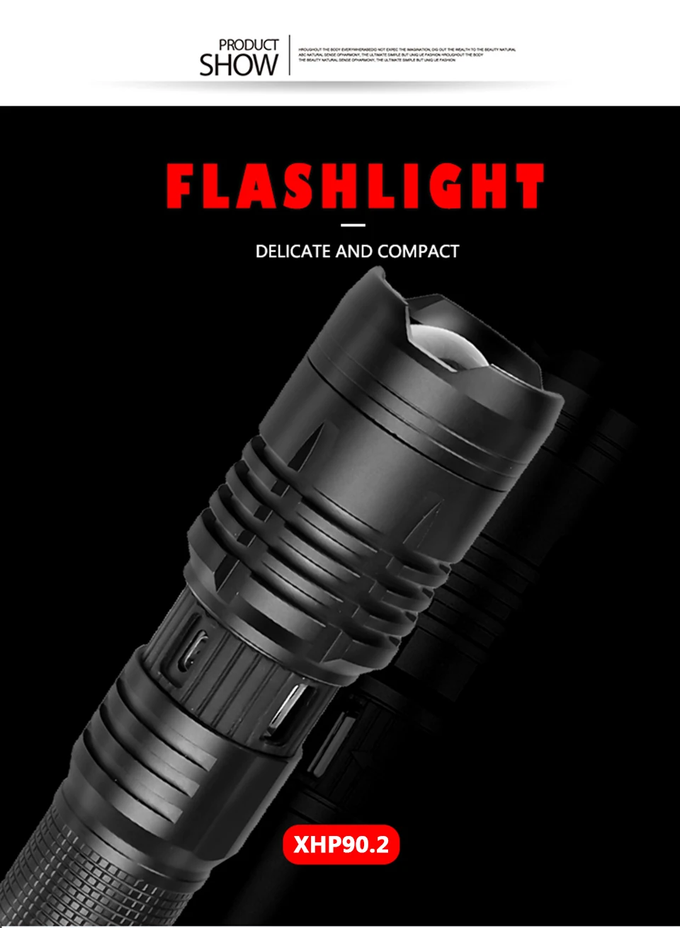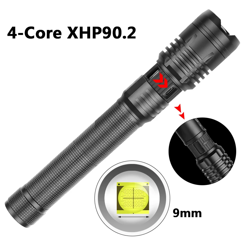 Фонарик XHP90.2 с 4-ядерным зумом, фонарик со светодиодной подсветк...