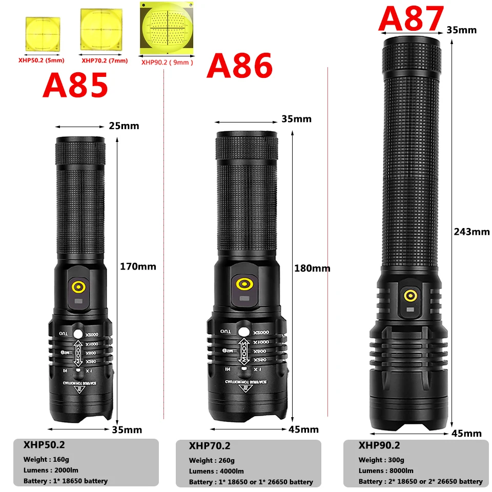 A86( XHP70.2 ) : 1*18650 или 1*26650 батарея