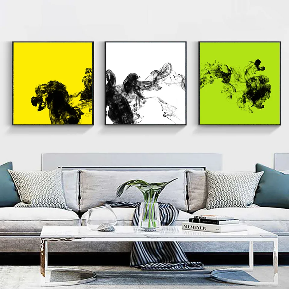Картина маслом, с изображением желтого, белого, черного, зеленого цвета, для гостиной, декоративная картина, поп-арт-стена, художественные плакаты и принты