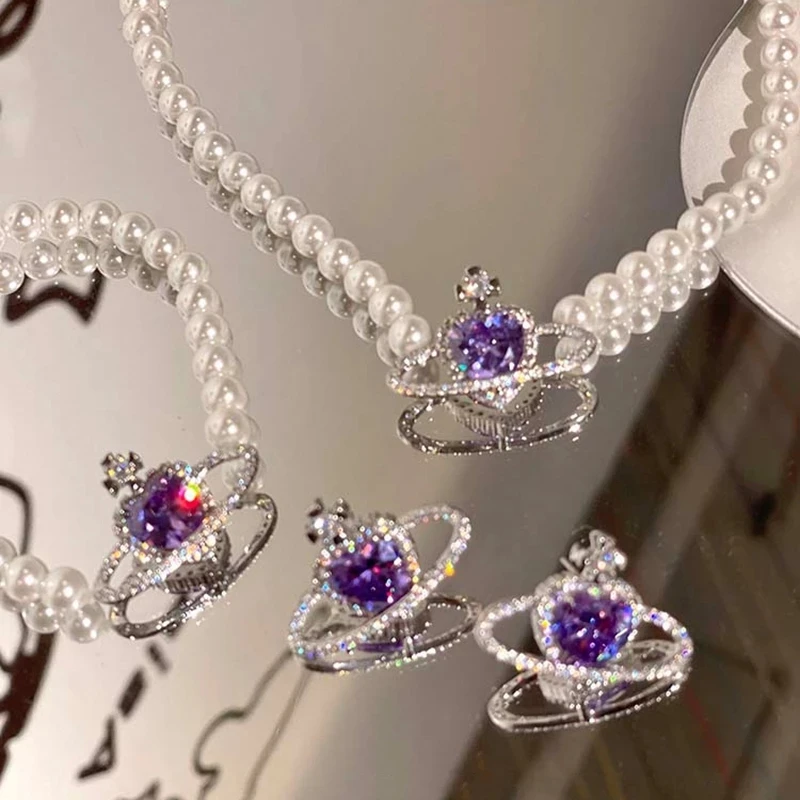 Корейские модные женские Кристаллы Элегантные планеты Стразы жемчуж...