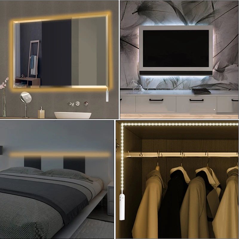Светодиодная лента с питанием от датчика движения, 1 м, 2 м, 3 м, USB-ночсветильник, лестница для шкафа, кухонного шкафа, светильник в любом месте