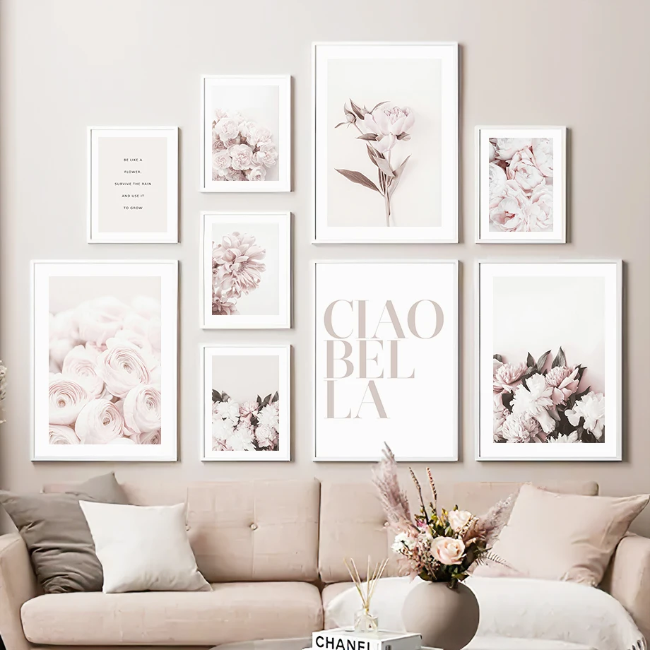 Свежий розовый цветок пион искусственная Роза Картина на холсте скандинавские постеры и принты растений настенные картины для декора гостиной