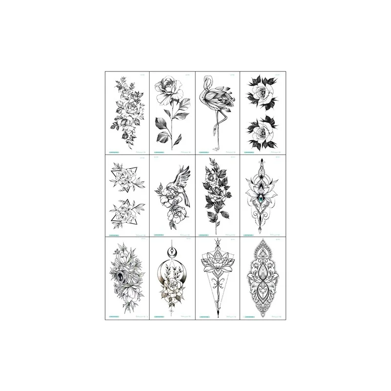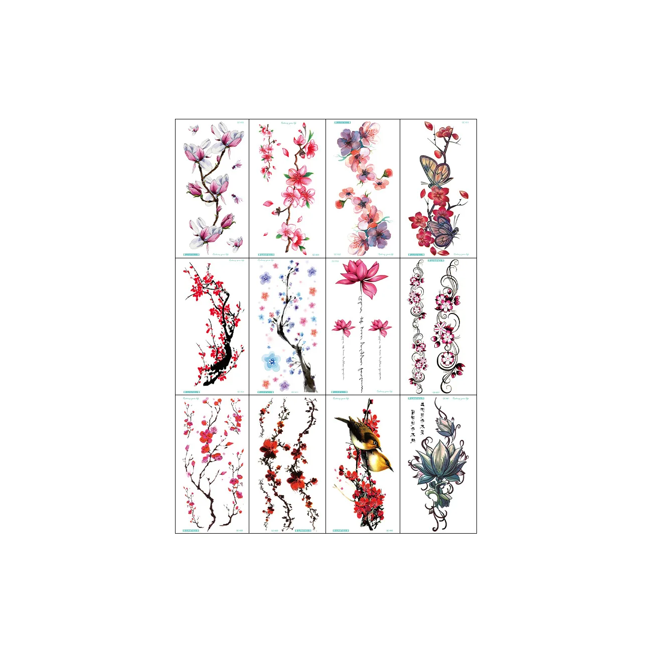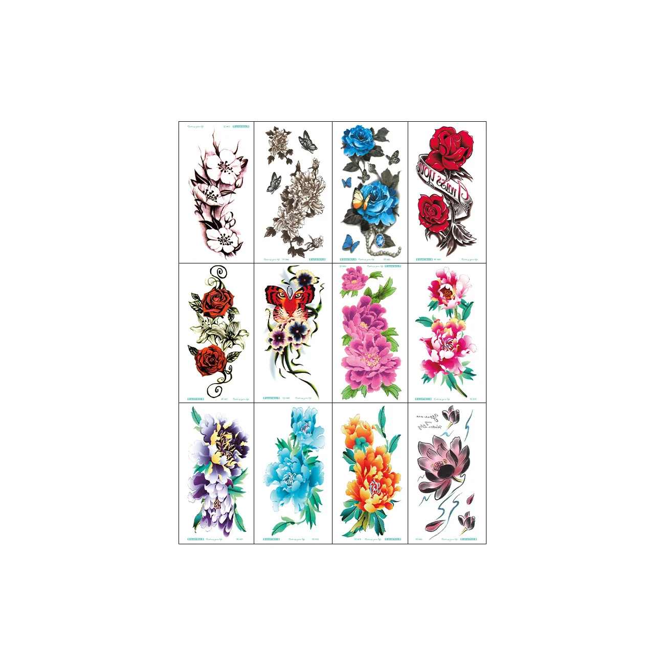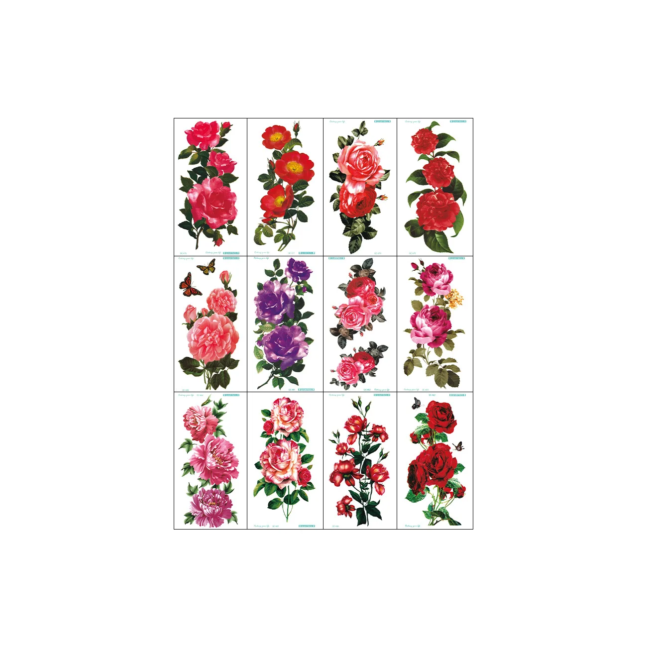 12 шт.лот, водостойкая временная татуировка-наклейка, цветы, флэш-татуировки, роза, пион, боди-арт, переводная наклейка на руку, искусственные тату для женщин