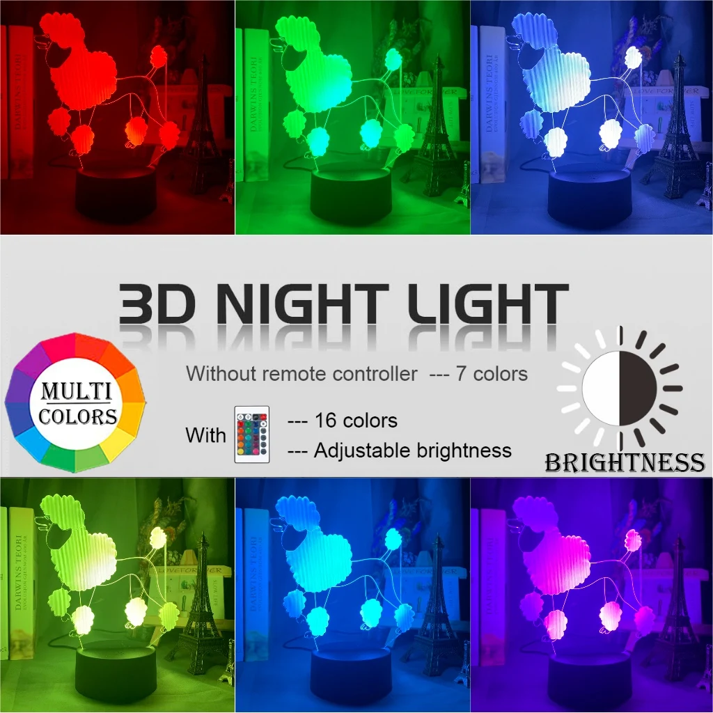 Акриловый светодиодный ночник, фигурка собаки, пуделя, ночной Светильник для детской спальни, светсветильник для сна, подарок для домашнего декора, настольная лампа