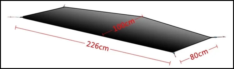 Размер: 226 см * (80/100/80) смТкань: 40D нейлон с силиконовым покрытием с обеих сторонВес: 123 гВодонепроницаемый индекс: 5000 мм