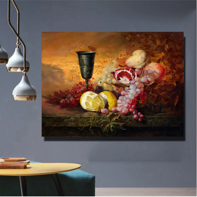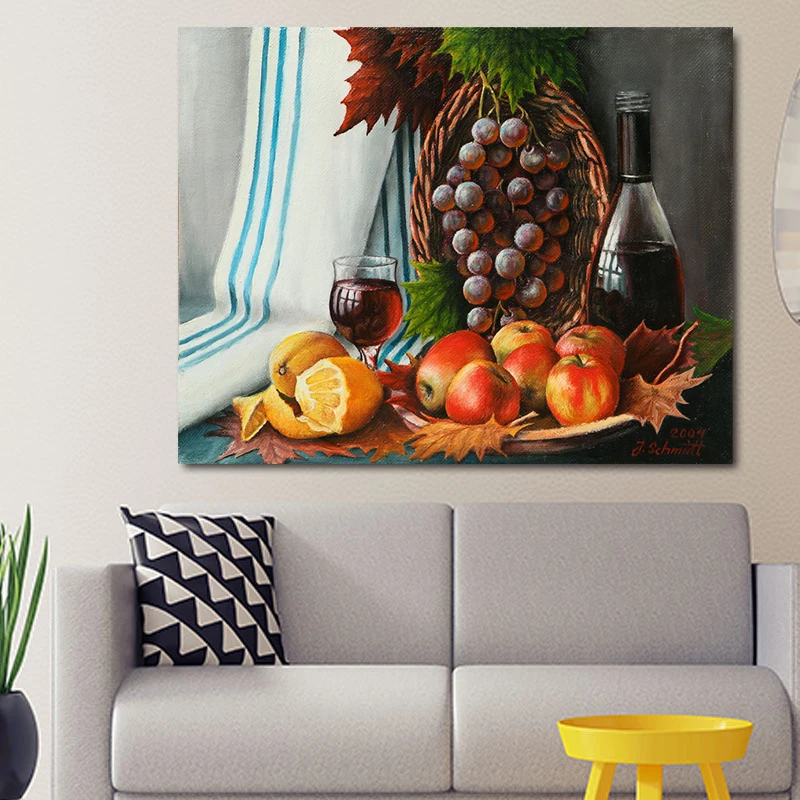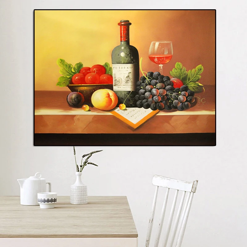 Картина маслом на холсте, 60x80 см, с изображением фруктов и вина для обеда, кухонный плакат
