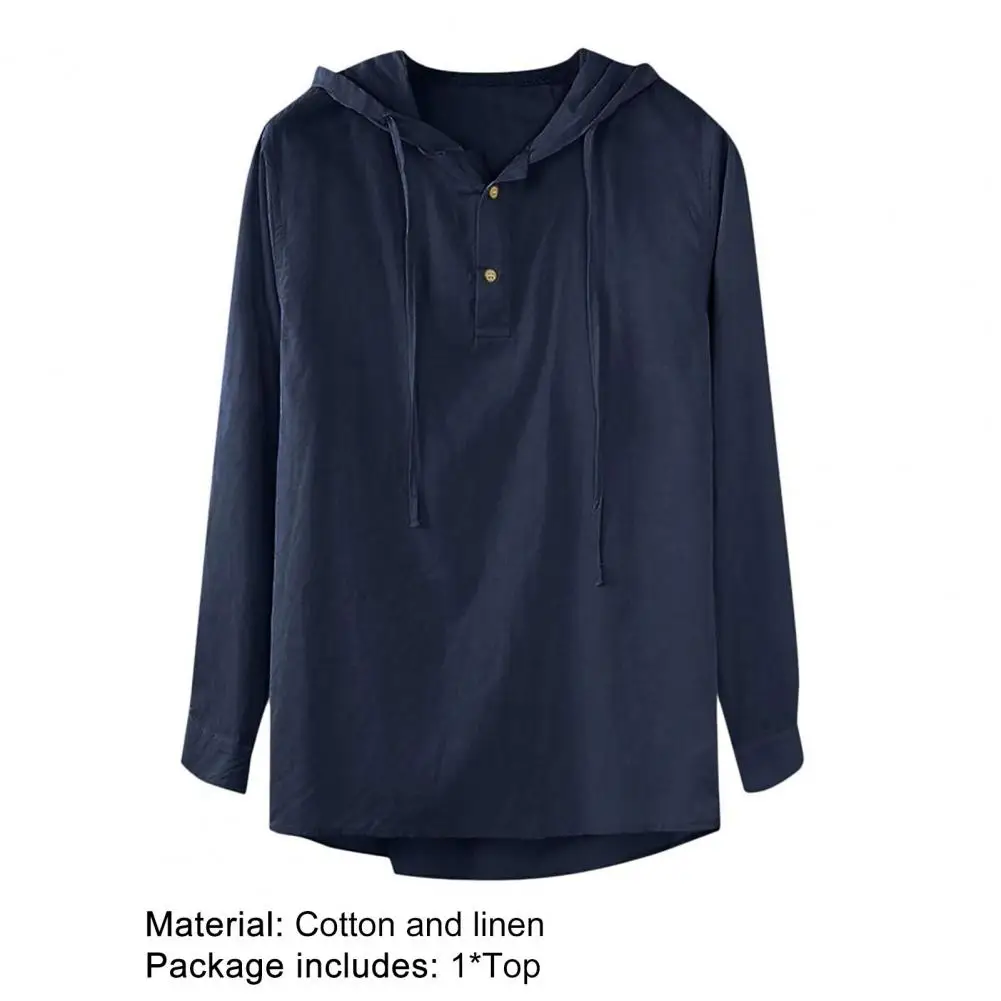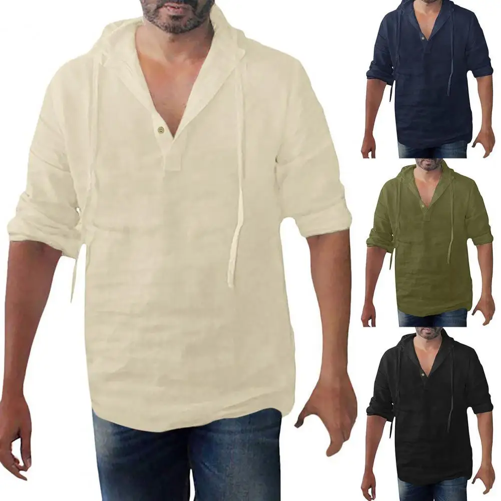 Мужские рубашки с длинным рукавом, однотонные хлопковые льняные мужские пуловеры с капюшоном для улицы