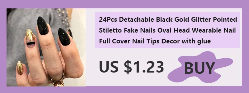 Накладные ногти 24 шт.кор. дизайн миндаля черного золота искусствен...