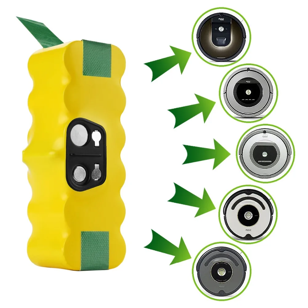 Батарея для iRobot Roomba 500 600 700 800 900 серия пылесос iRobots roomba 600 620 650 700 770 780 800 Технические характеристики: Батарея Напряжение: 14,4 V Тип батареи: Ni-MH Вес: 650 г Защита от неправильного напряжения, короткого замыкания, внутреннего перегрева. Совместимость со следующими моделями: IRobot Roomba 510 , iRobot Roomba 530 , iRobot Roomba 531 iRobot Roomba 532, iRobot Roomba 533 , iRobot Roomba 535 IRobot Roomba 536 , iRobot Roomba 540, iRobot Roomba 545 IRobot Roomba 550, iRobot Roomba 551 , iRobot Roomba 552 IRobot Roomba 560 , iRobot Roomba 561 ,iRobot Roomba 562 IRobot Roomba 570 , iRobot Roomba 580 , iRobot Roomba 581 IRobot Roomba 585, iRobot Roomba 595, iRobot Roomba 600 IRobot Roomba 610, iRobot Roomba 620 , iRobot Roomba 630 IRobot Roomba 650, iRobot Roomba 653,iRobot Roomba 654 IRobot Roomba 660, iRobot Roomba 700, iRobot Roomba 760 IRobot Roomba 770 , iRobot Roomba 780, iRobot Roomba 790 IRobot Roomba 800, iRobot Roomba 870 , iRobot Roomba