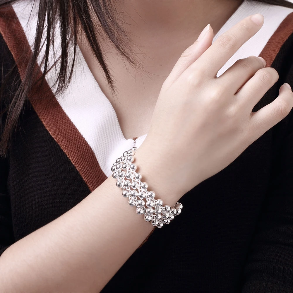 925 стерлингового серебра Полный Гладкие бусины браслет для женщин ...