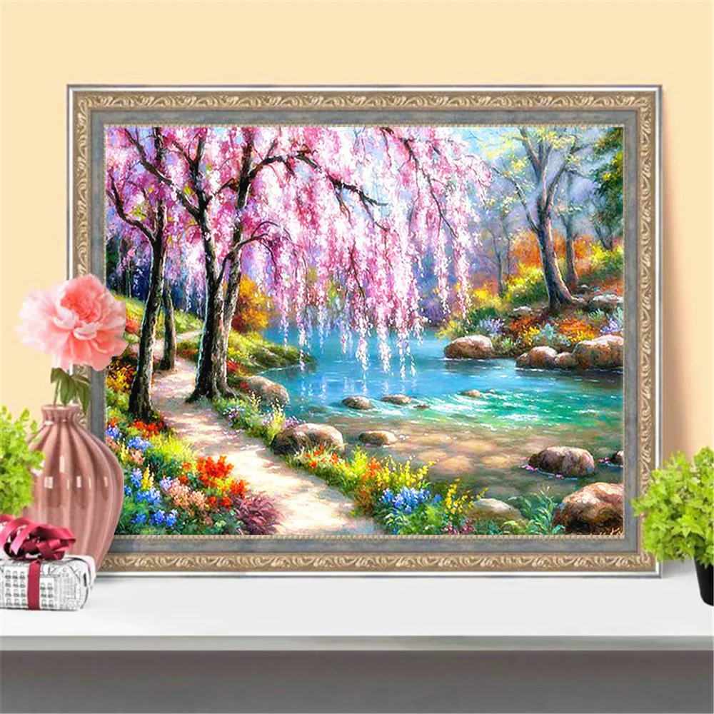 Картина 5d, вышивка крестом, пейзаж, весенний сезон, алмазная картина, полностью квадратная мозаика, дерево, озеро, зима, головоломка