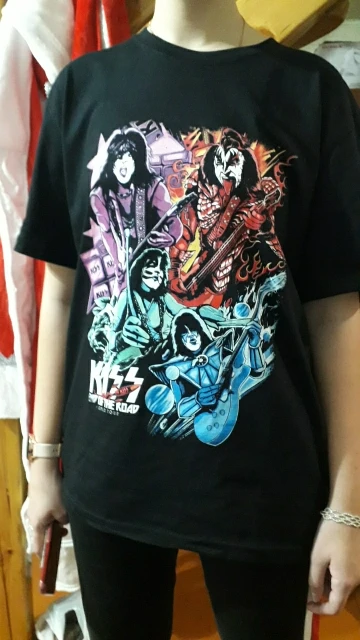 Футболка Мужскаяженская оверсайз хлопковая, топ с принтом рок-группы KISS, черная рубашка в стиле панк
