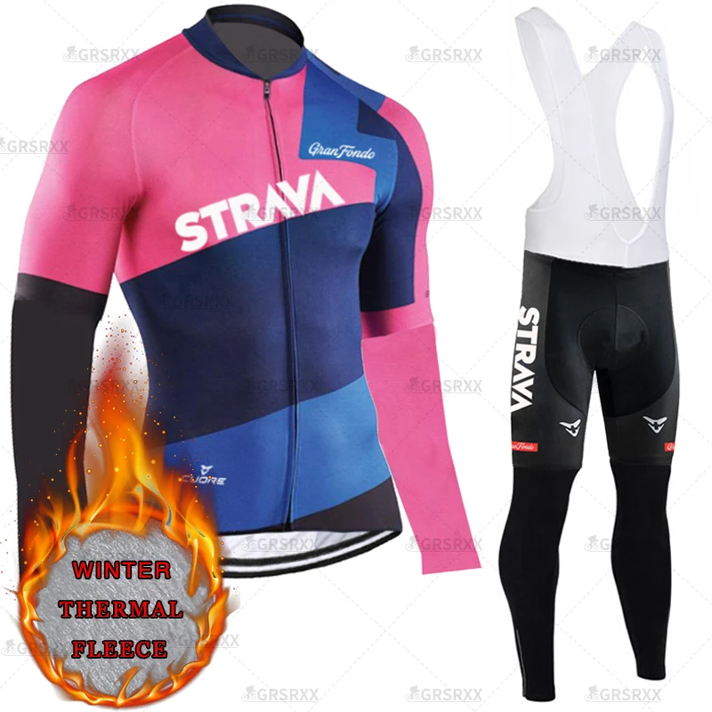 Трикотажный женский костюм STRAVA, зимний, для велоспорта, теплый, трёхцветный, с длинными рукавами